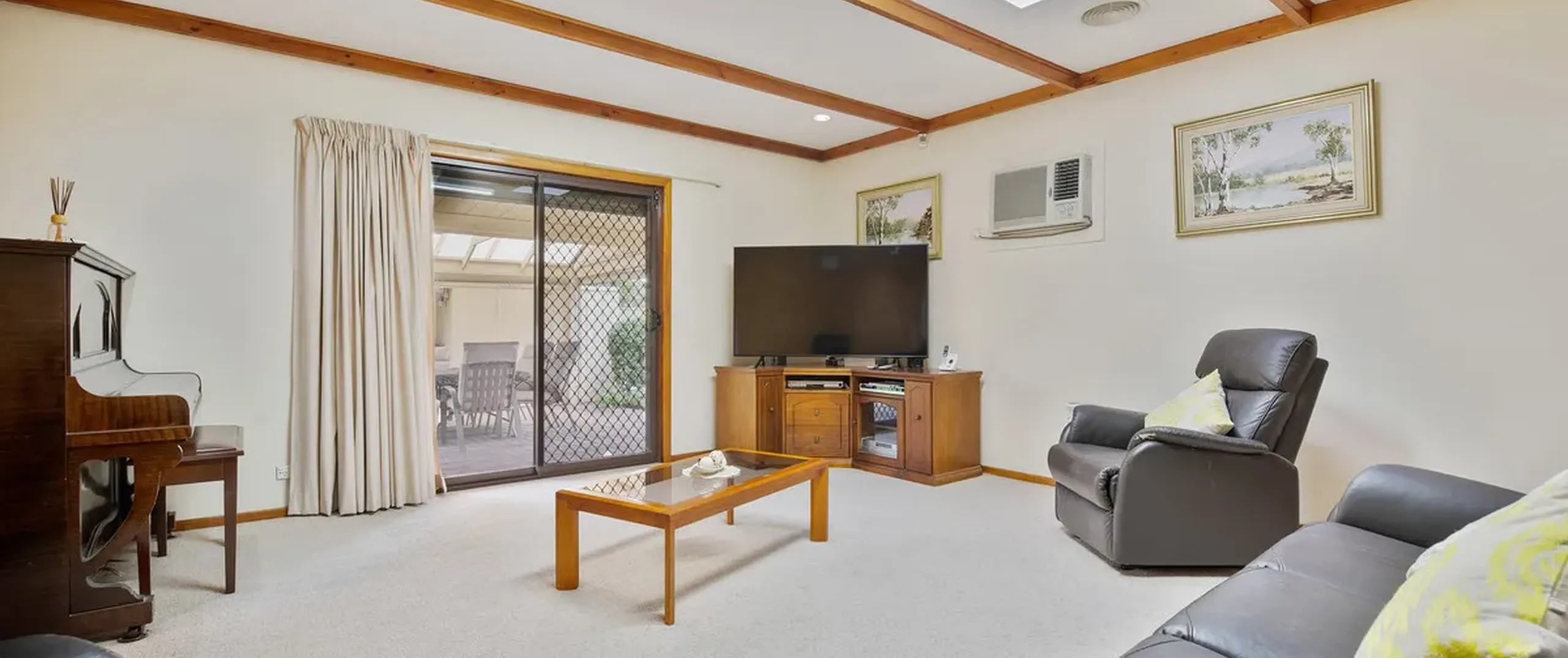 Boasting three bedrooms and one bathroom, plus original timber accents from the beamed ceiling in the rumpus to the glass sliding doors in the lounge and the gorgeous cabinetry within the well-equipped kitchen. The 40-panel solar system, monitored alarm and a large laundry complete the home.
