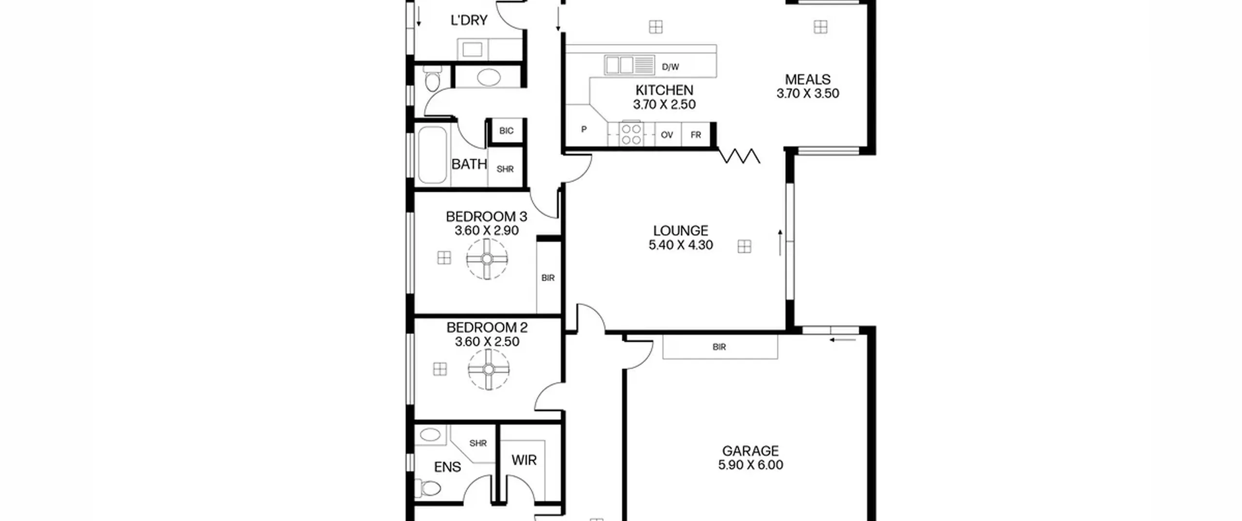 - Formal lounge with bi-fold doors opening to the kitchen/meals area and with external sliding door access