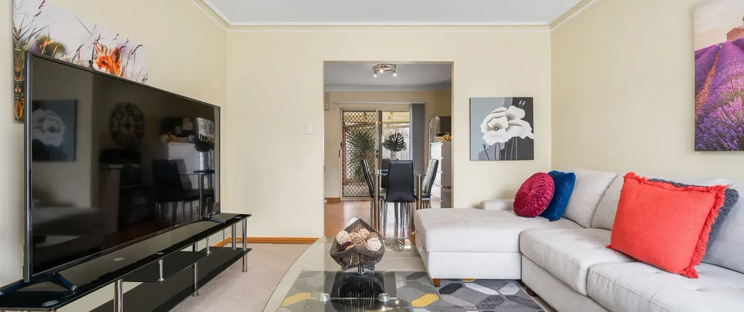 - Spacious living room adjoining the open dining and kitchen area