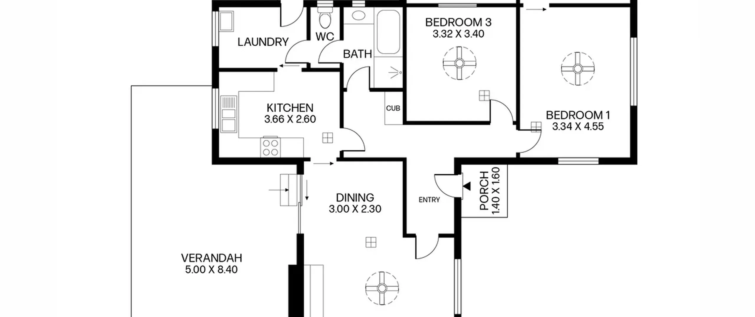 - Three spacious bedrooms, bedrooms one and three with ceiling fans