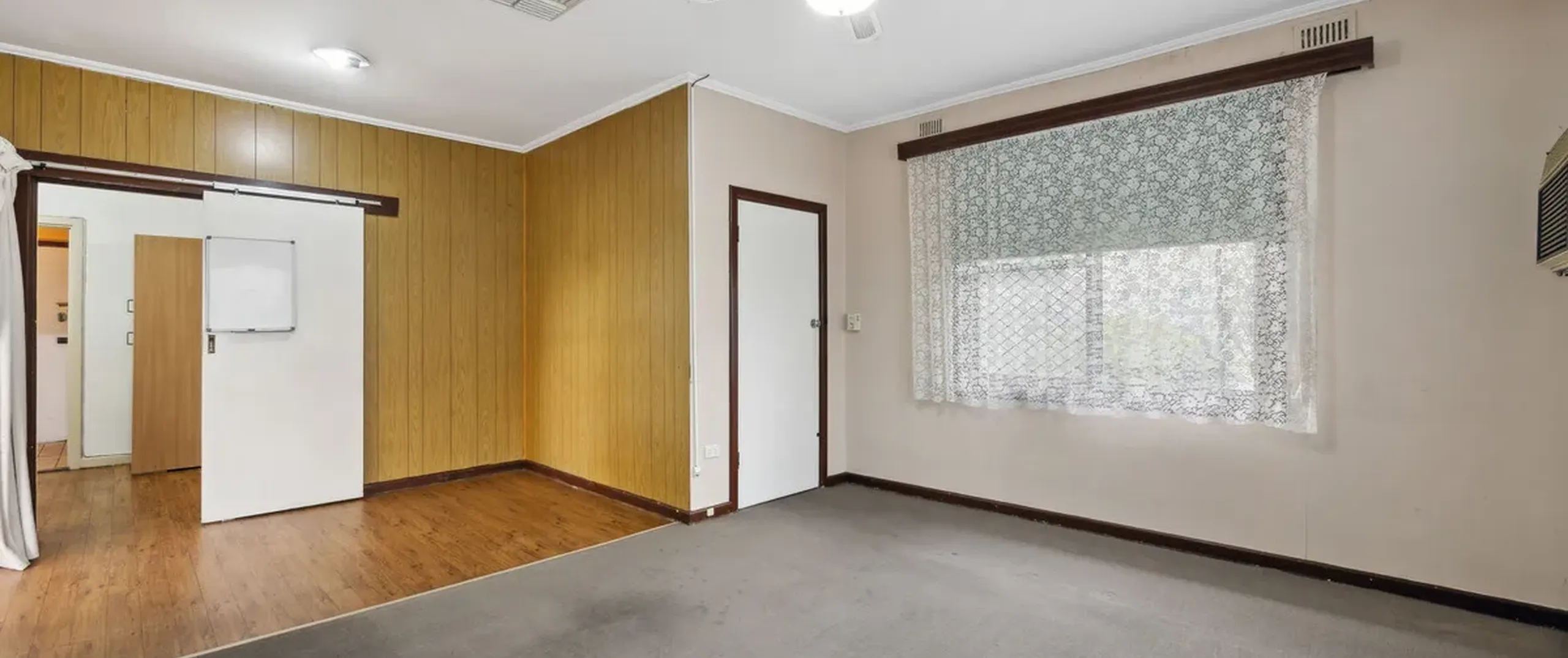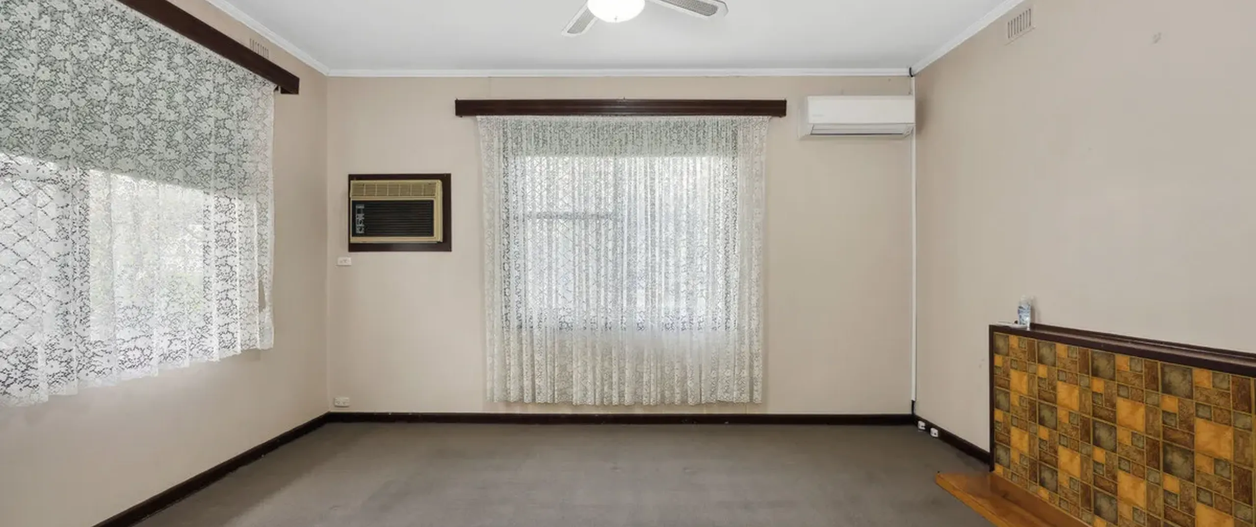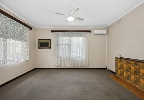 - Open plan lounge and dining area complete with a ceiling fan and split system air conditioner