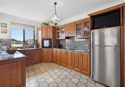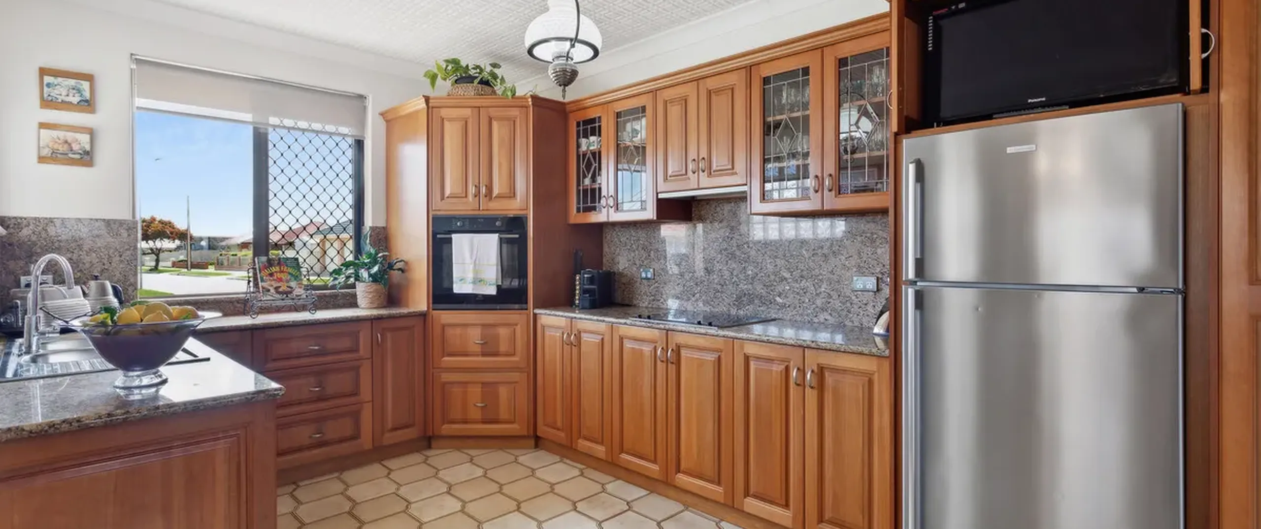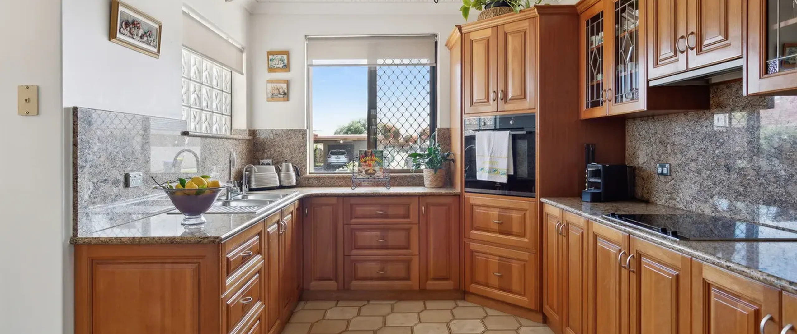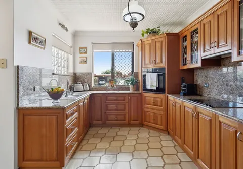- Charming timber kitchen with electric cooktop, expansive benchtops and ample cupboard space
