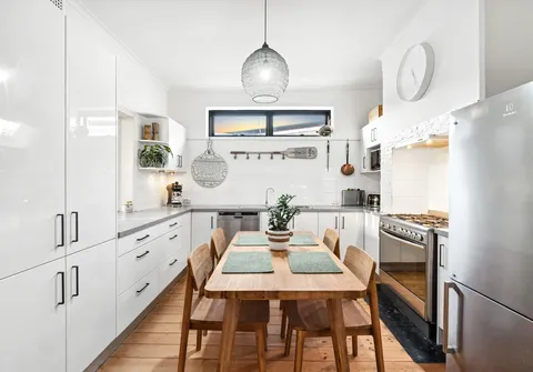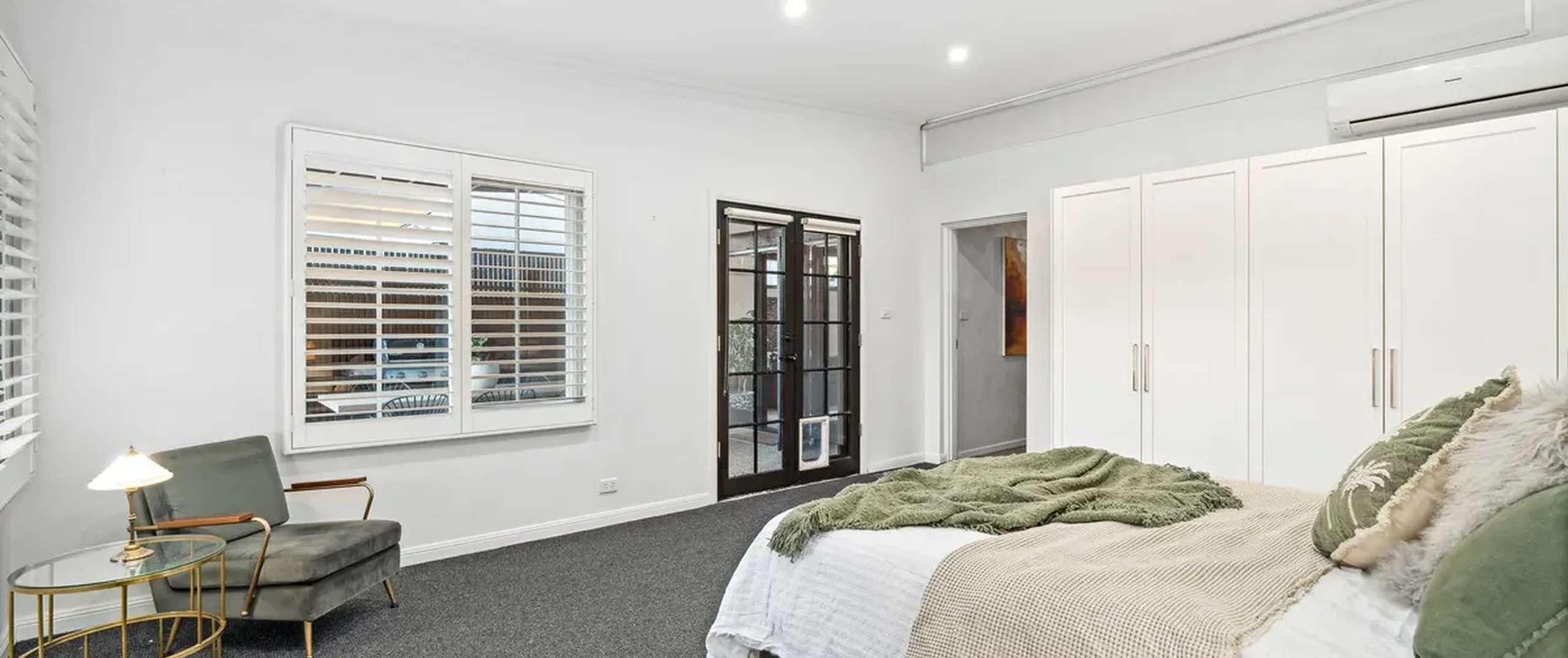 With four bedrooms (or three plus a family room) and two bathrooms, this home is both practical and inviting. The master suite provides a private retreat with an ensuite bathroom. The fourth bedroom, which can also serve as a family room, features wall-to-wall built-in robes and French doors that open to a pergola overlooking the well-established, low-maintenance gardens.