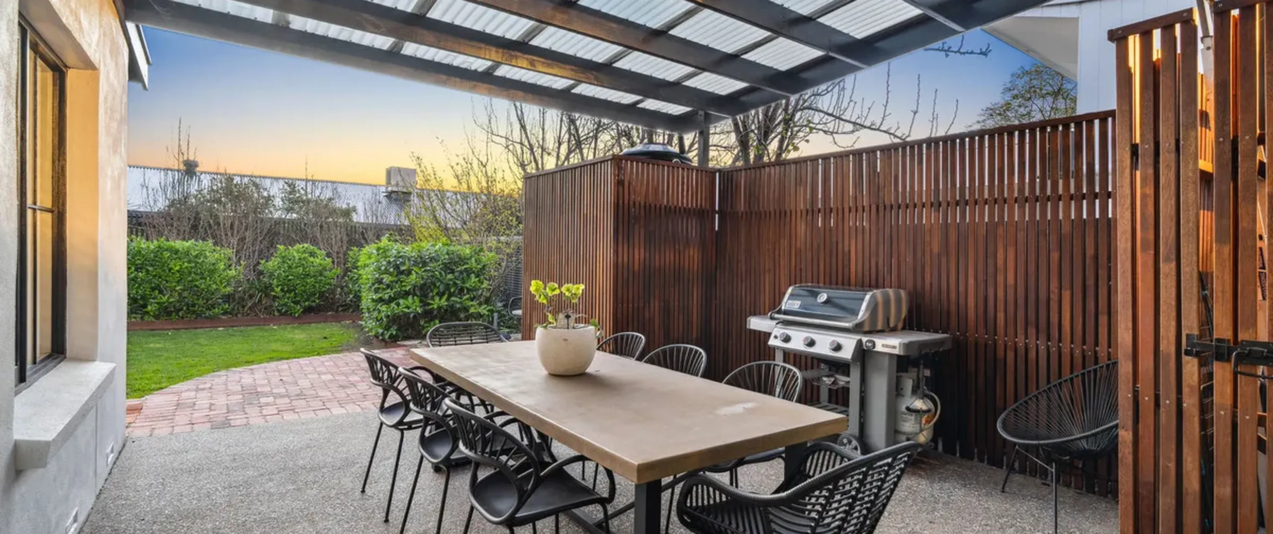 Outdoor living is a highlight, with a covered entertaining area perfect for year-round enjoyment, surrounded by a lush, low-maintenance garden—an ideal space for children and pets.