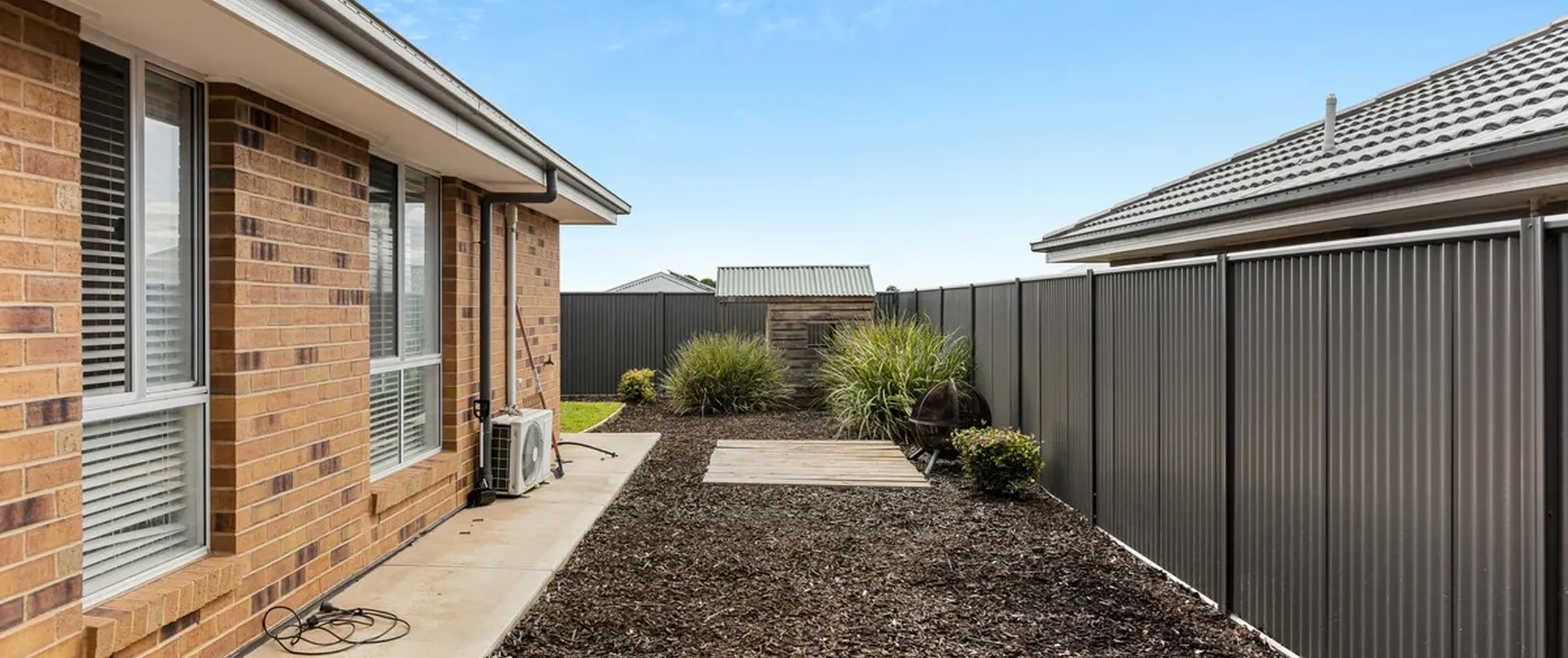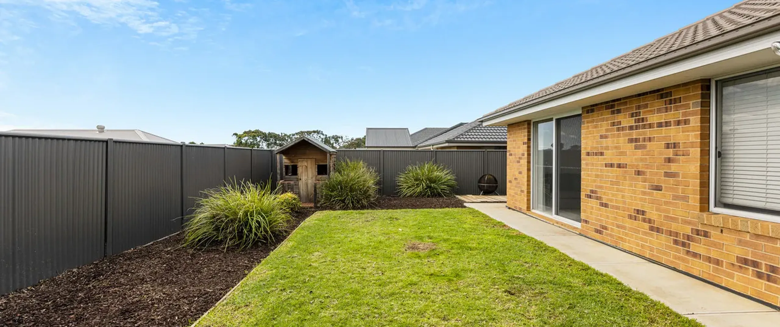 - Large, secure low maintenance yard with cubby house