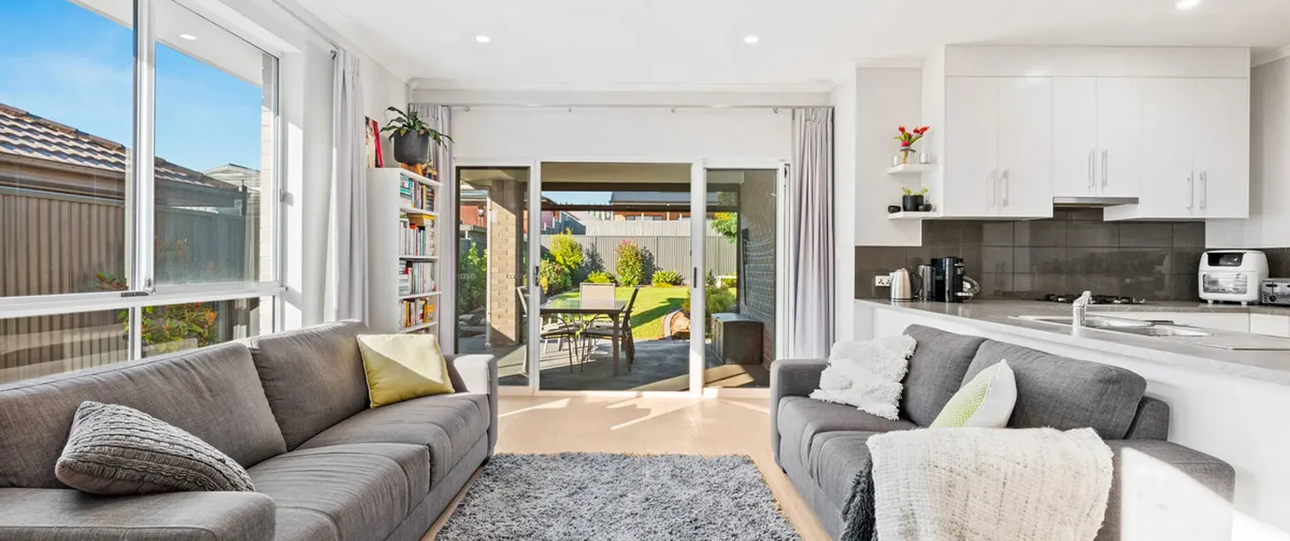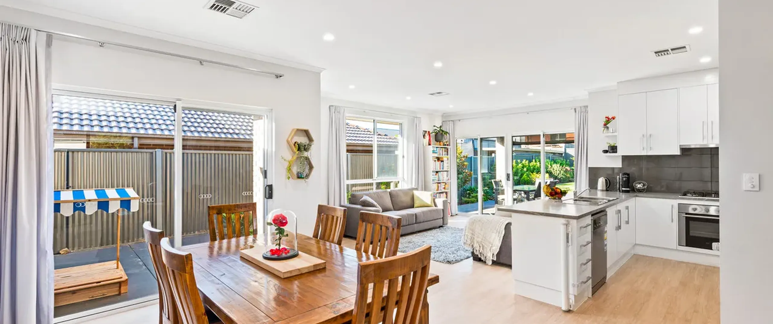 - Bright open plan living, dining and kitchen area with multiple glass sliding doors leading outside and offering an abundance of light