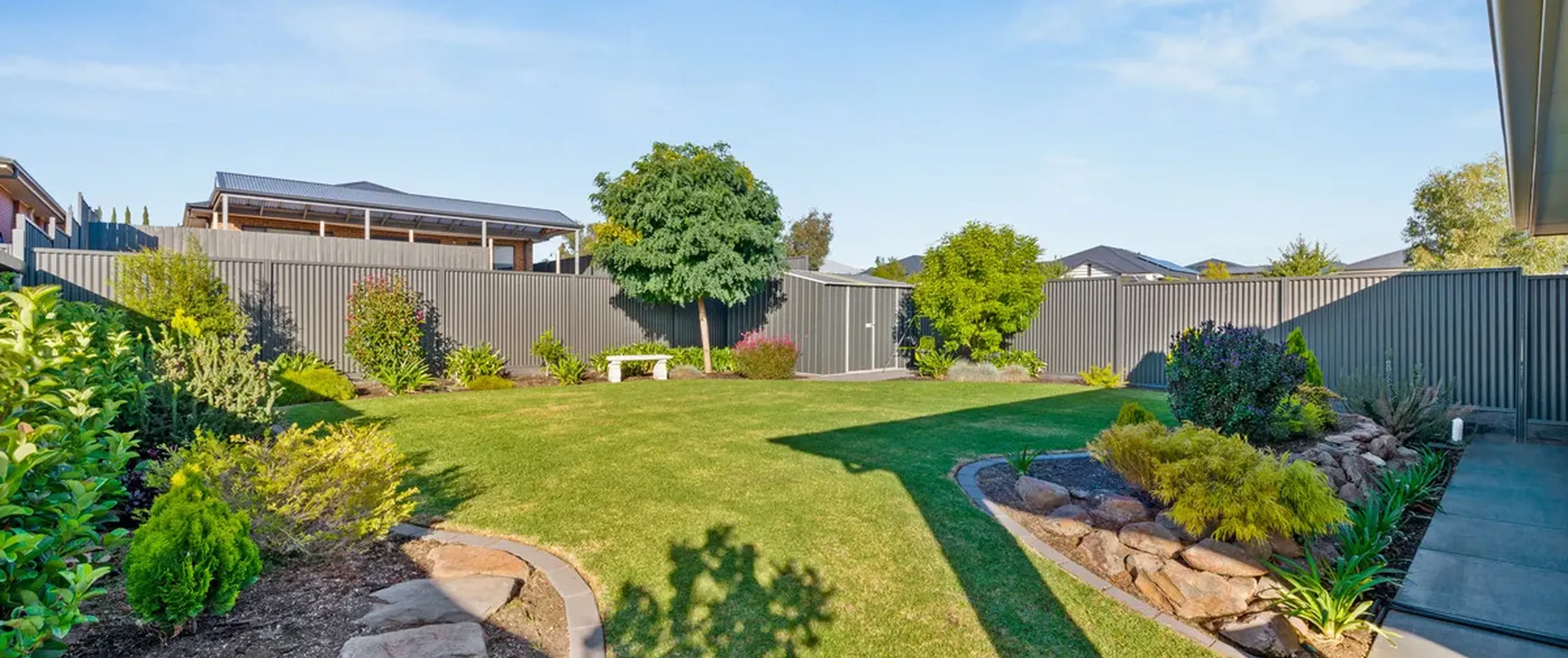 - Beautifully landscaped backyard with garden beds and good-sized grass area for kids and furry friends to enjoy