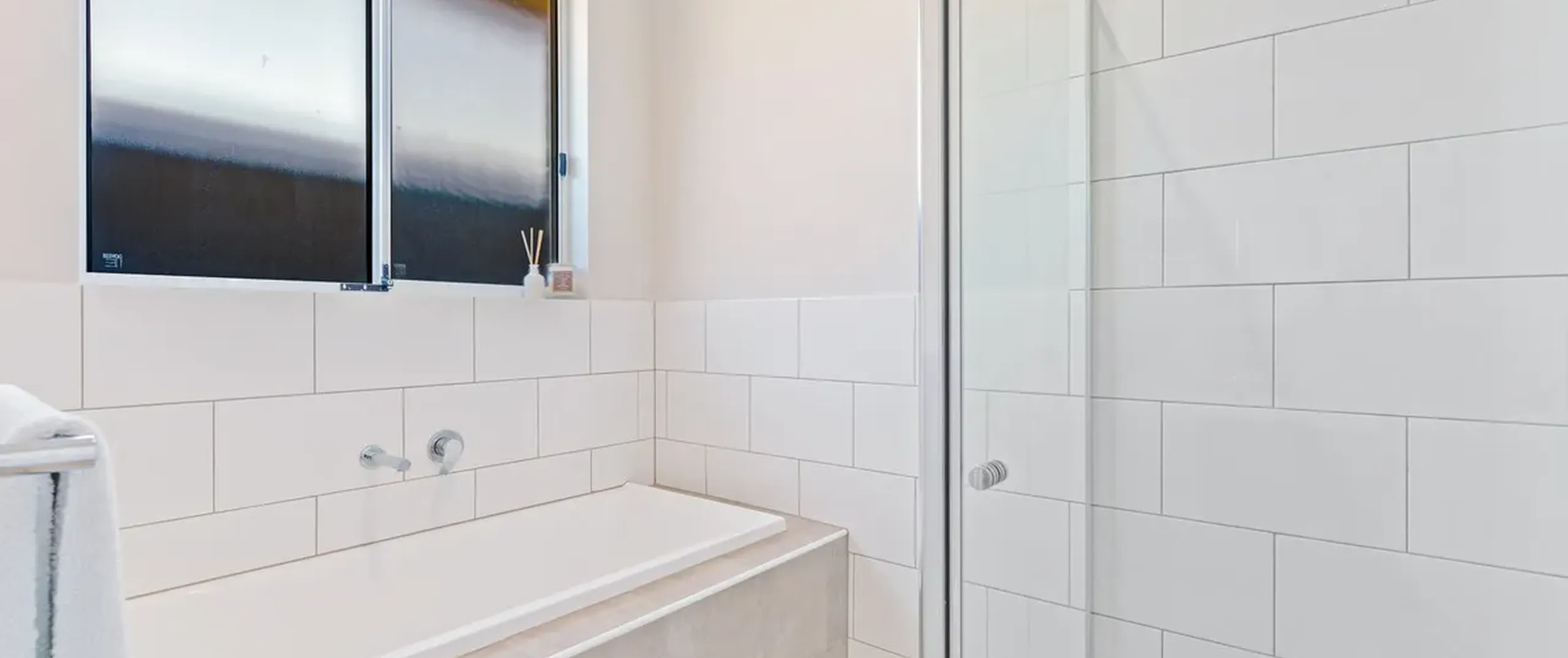 - Sophisticated white kitchen with dishwasher, gas cooktop, ample cupboard space and breakfast bar