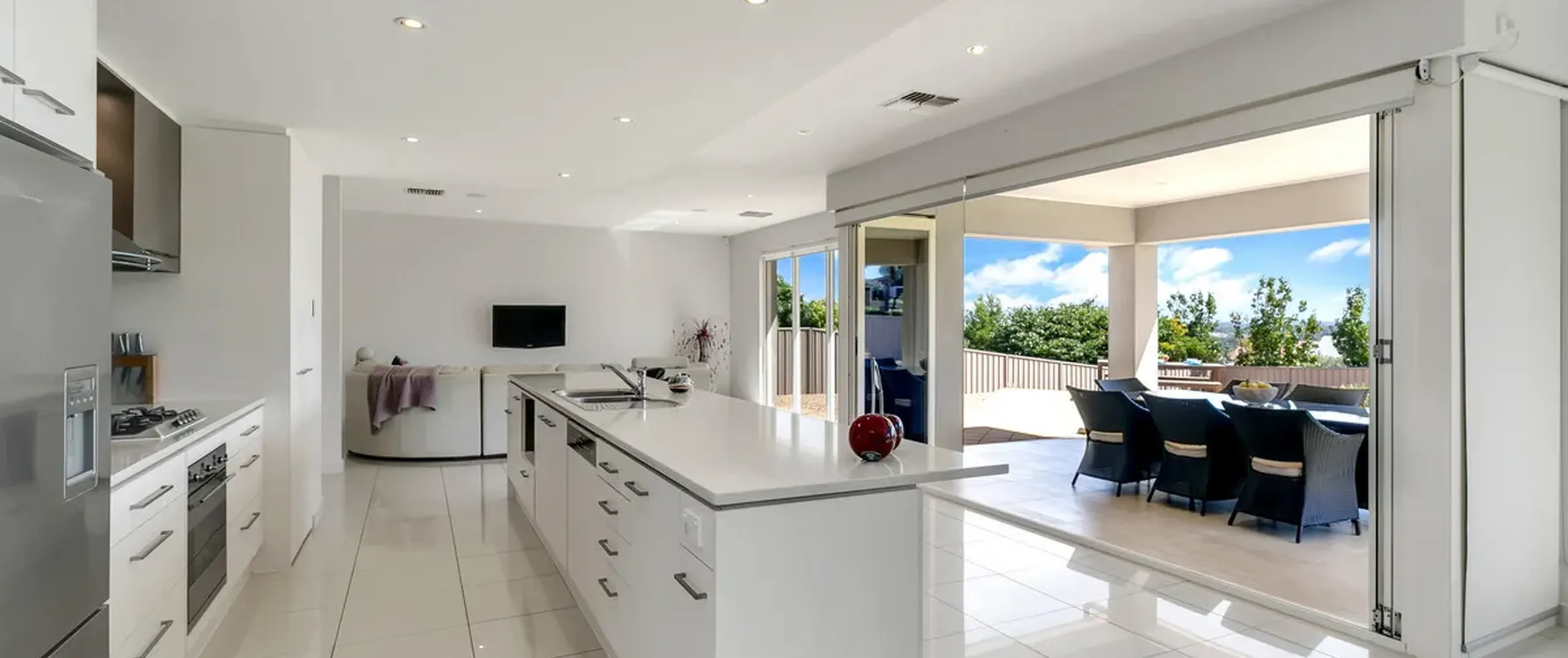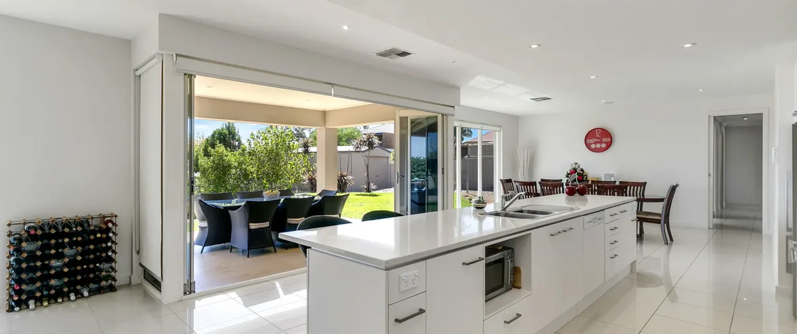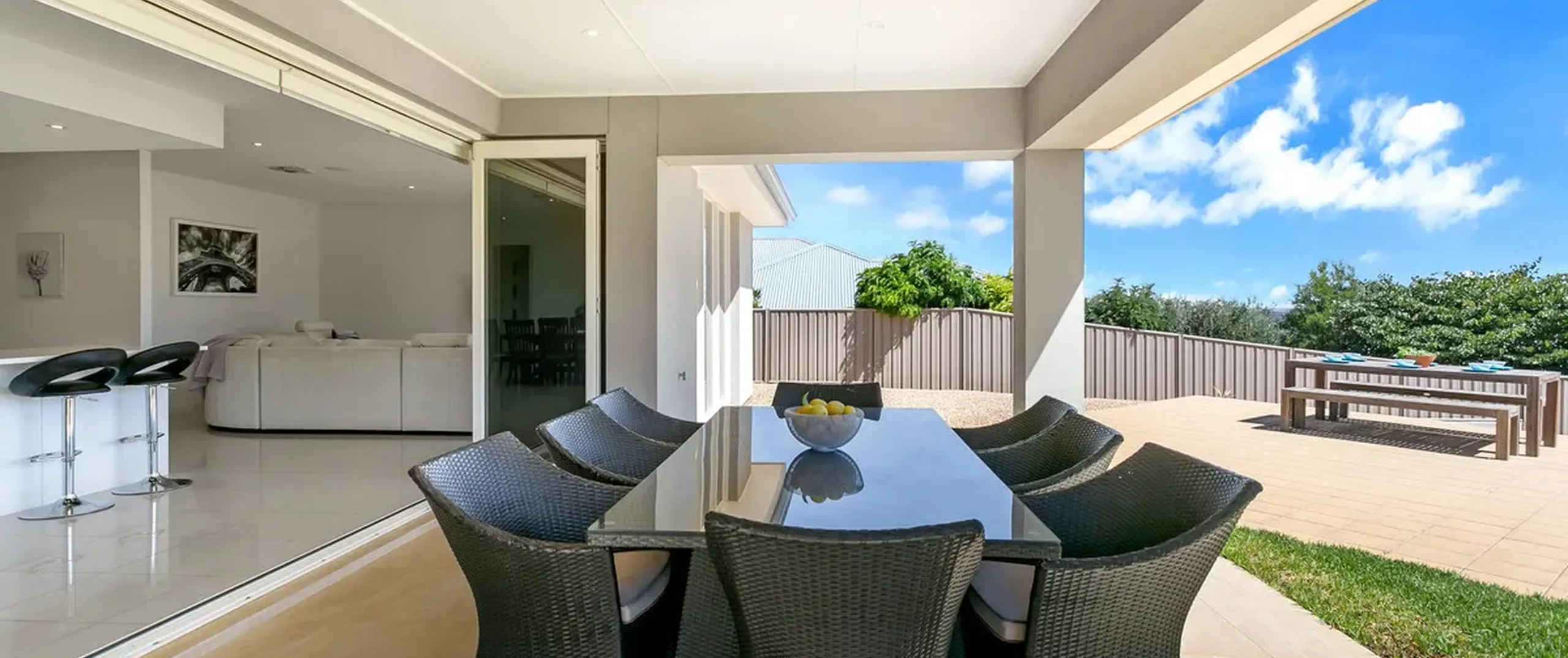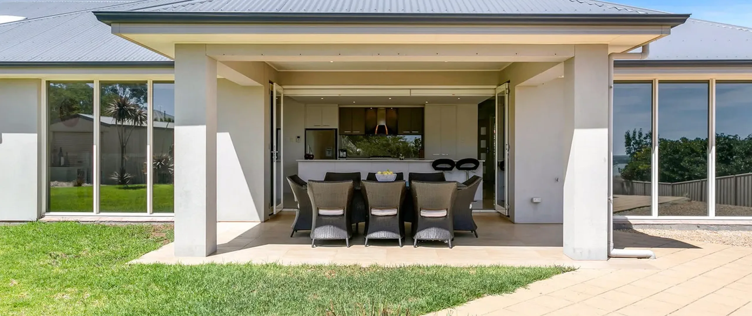 - Expansive alfresco area with bi-fold doors from the kitchen area and offering gorgeous views