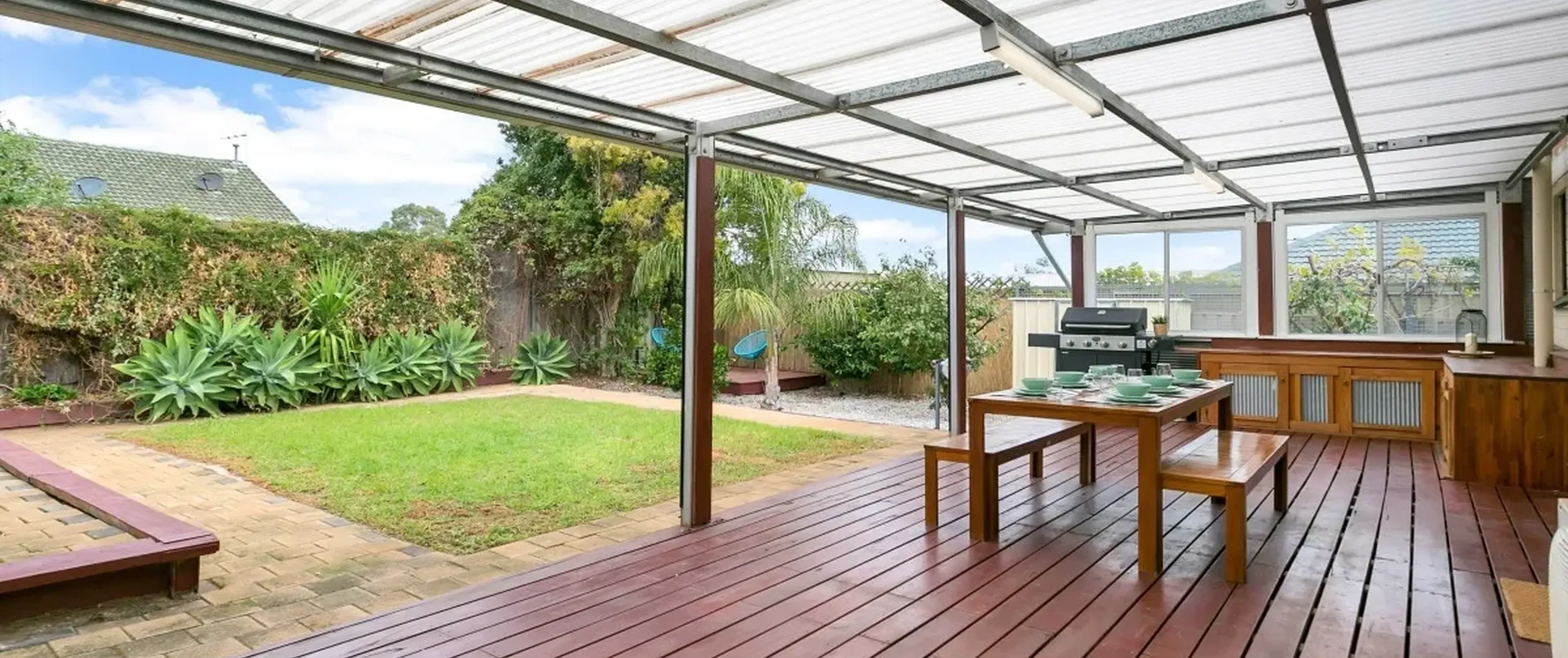 - Expansive undercover outdoor entertaining area with deck and built-in bench