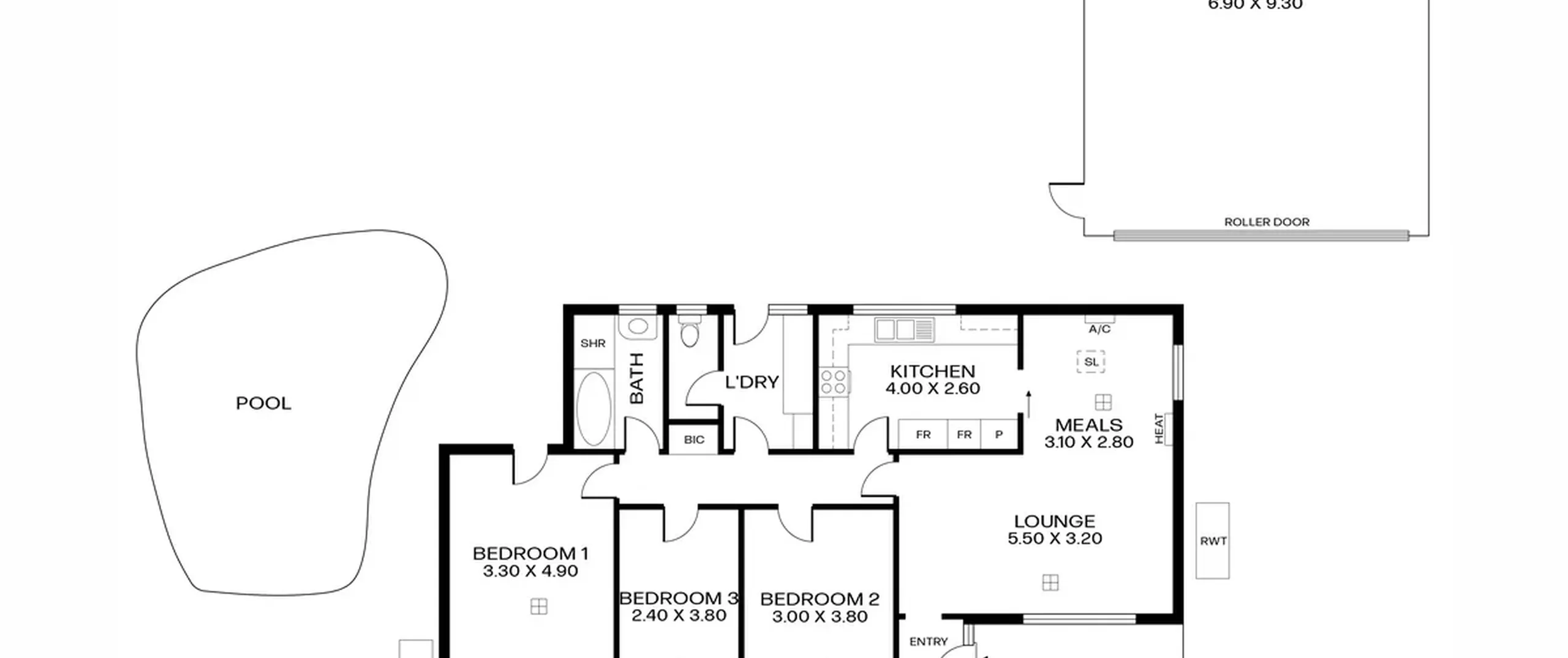 - Large garage with roller door