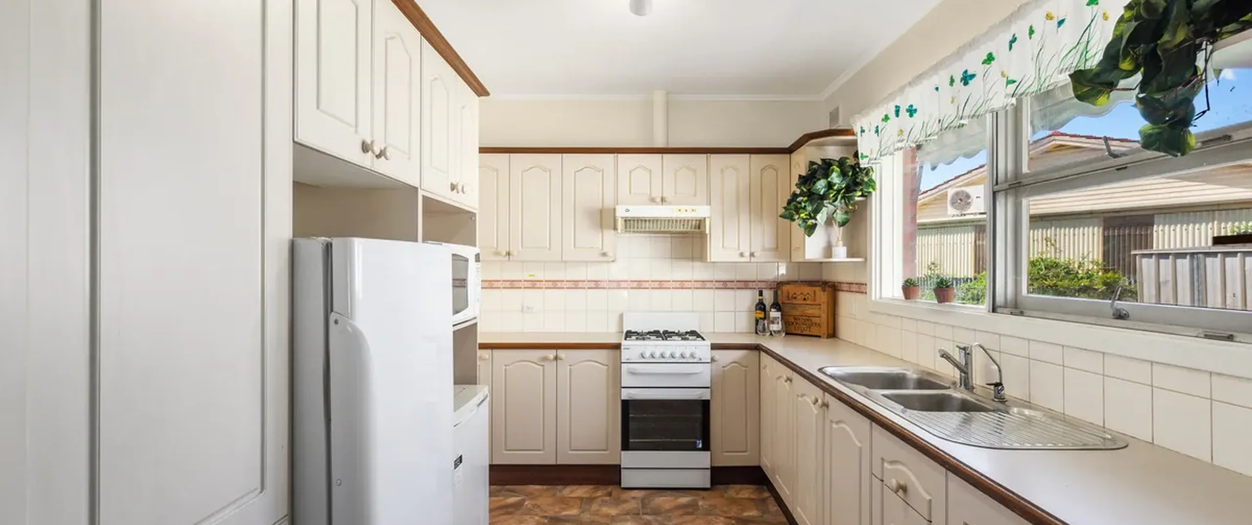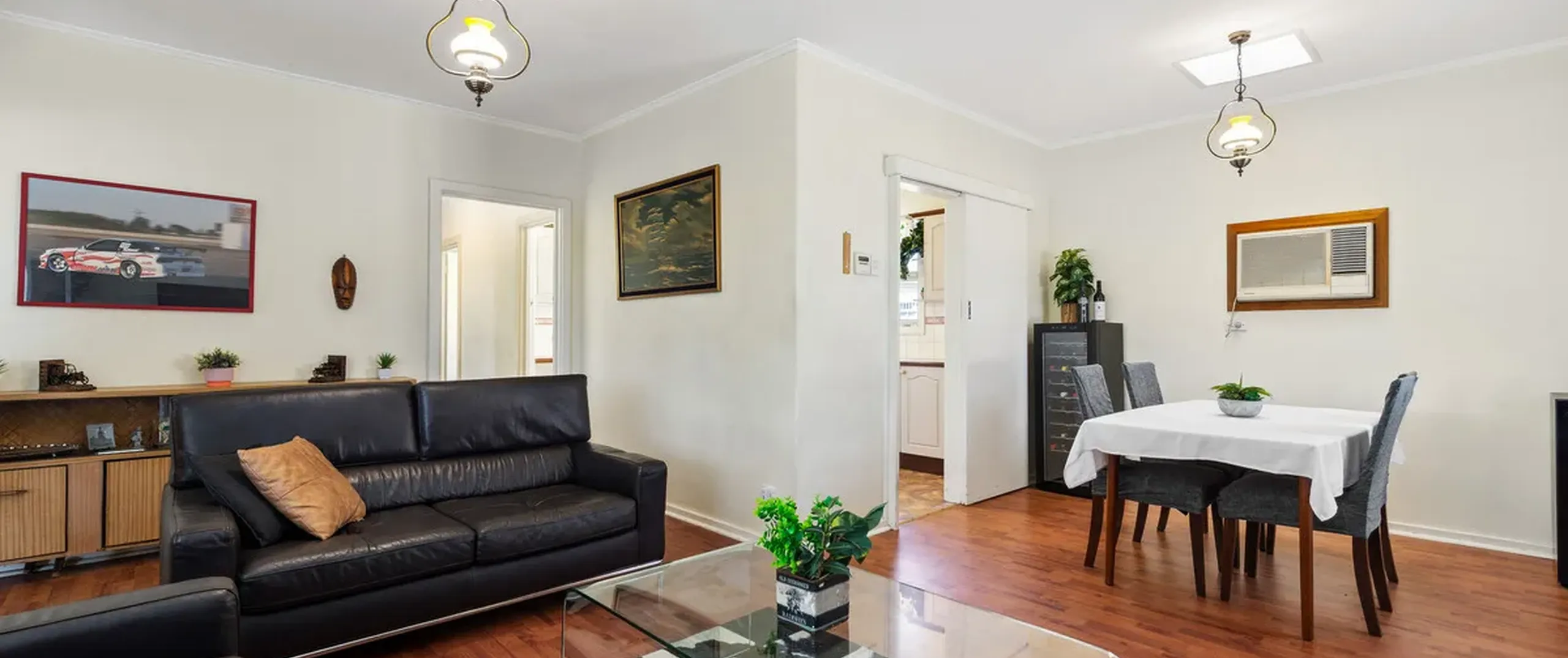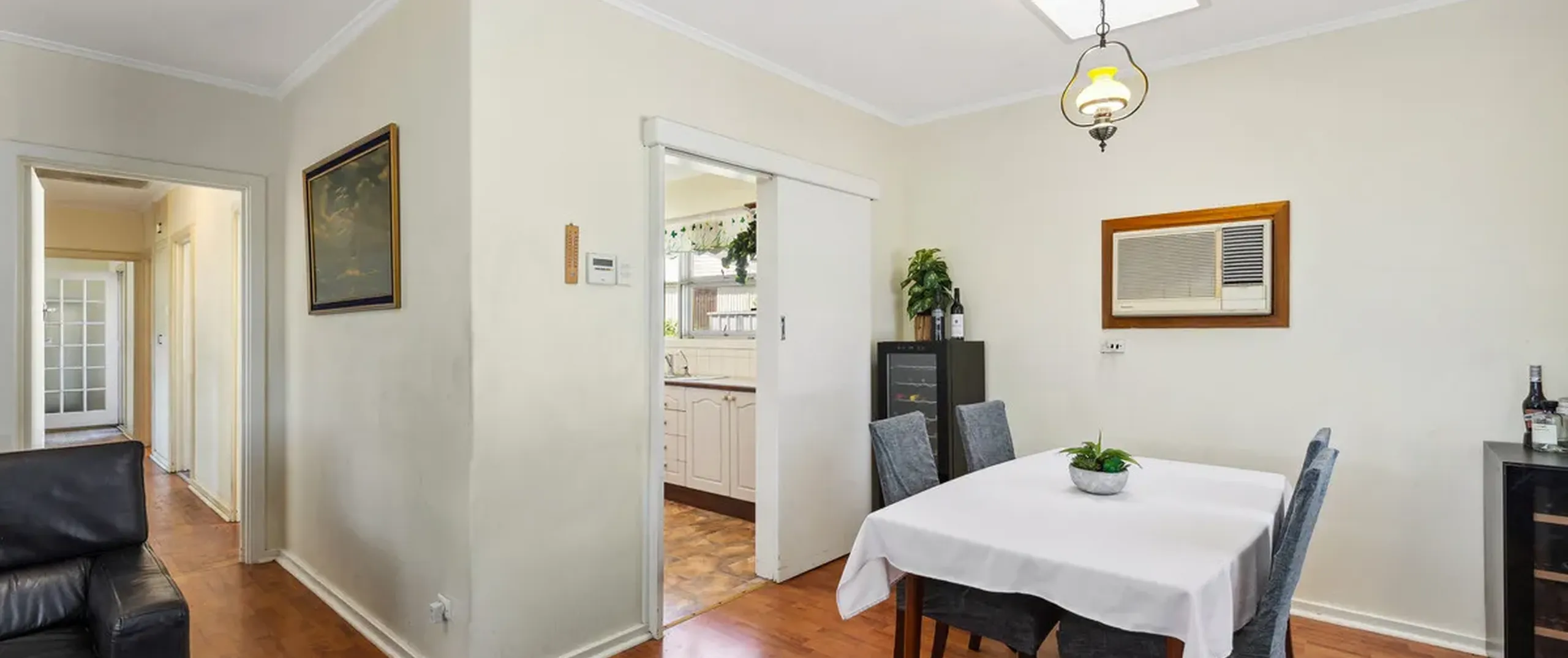 - Light-filled lounge and meals area with split-system air-conditioner, heater and sliding door access to the kitchen