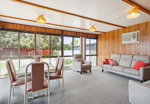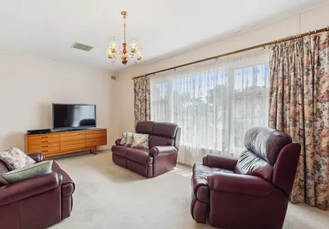 Step inside to discover three well-appointed bedrooms, two equipped with built-in robes, providing ample storage for your convenience. The house offers a spacious lounge room upon entry, complemented by a separate light-filled family and dining area, as well as meals and kitchen space, providing multiple living zones for your family's needs. The central main bathroom adds practicality to this comfortable abode.