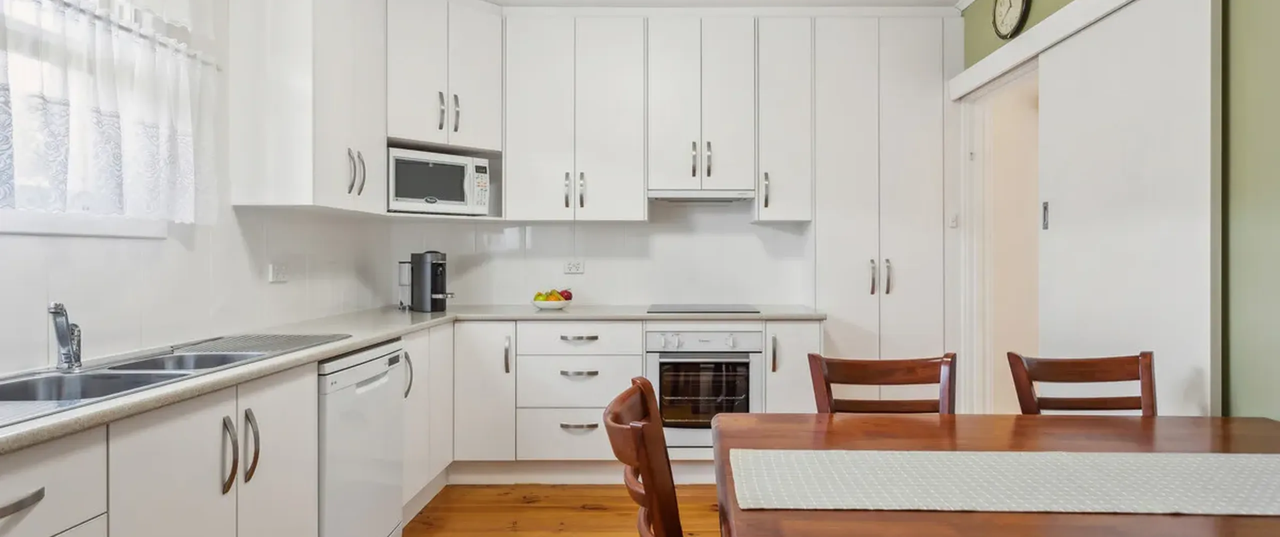 - Modern dine-in kitchen with electric cooktop and ample bench and cupboard space