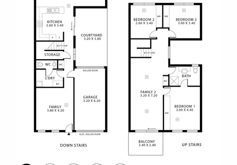 The two-storey layout offers light-filled living with three bedrooms, a two-way bathroom and a family room with a balcony set on the upper level. Downstairs, open-plan living awaits with a seamless flow from the dining and lounge room out to the courtyard.