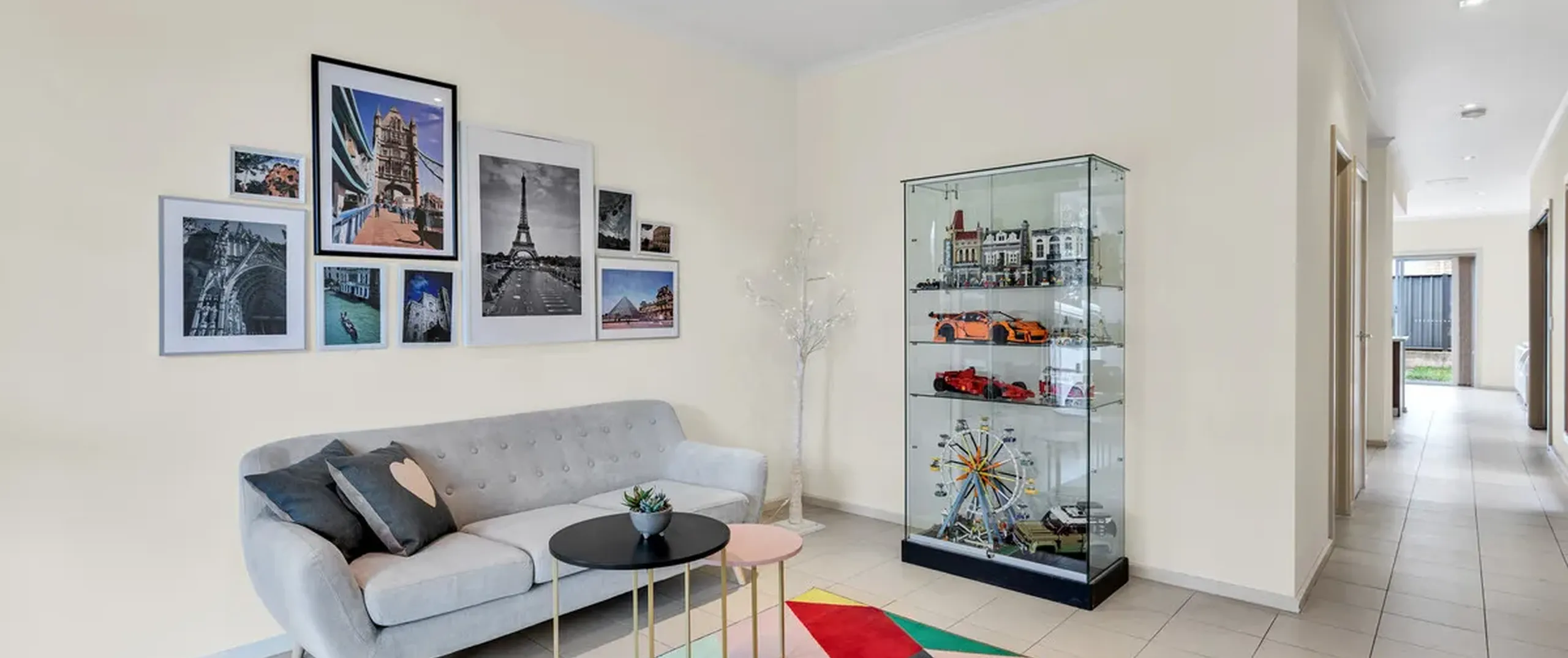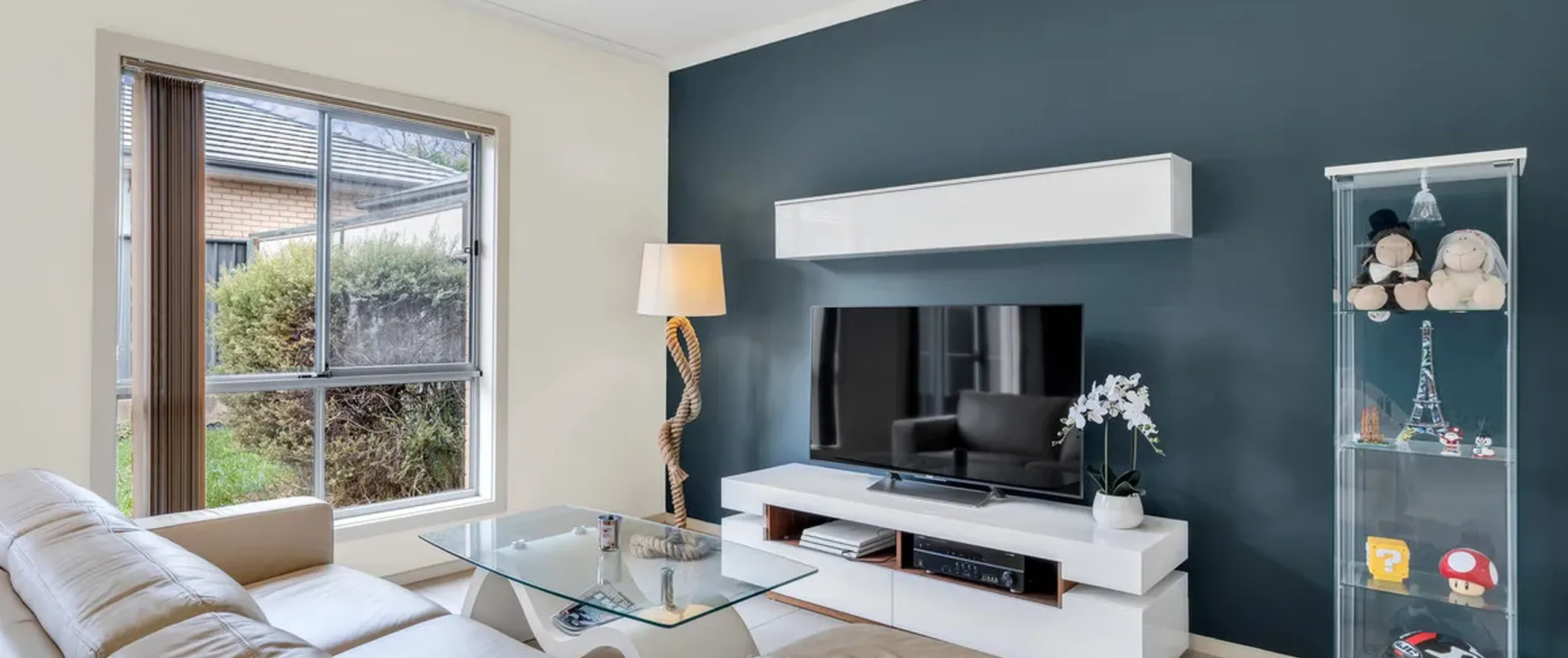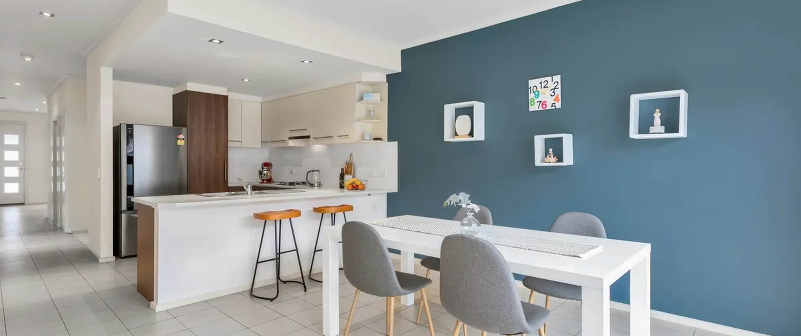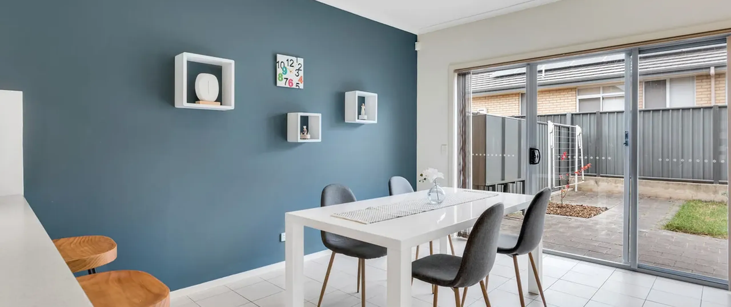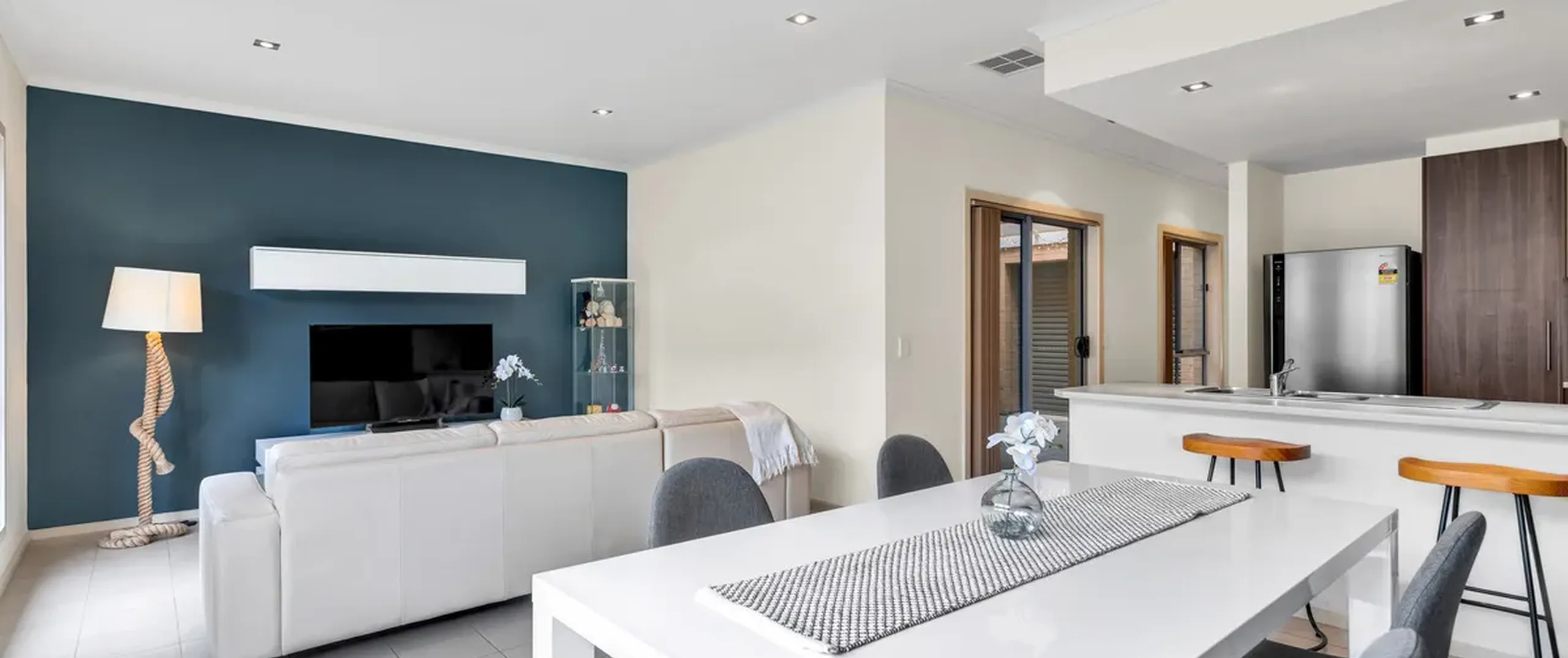 - Open plan dining and lounge room with feature walls