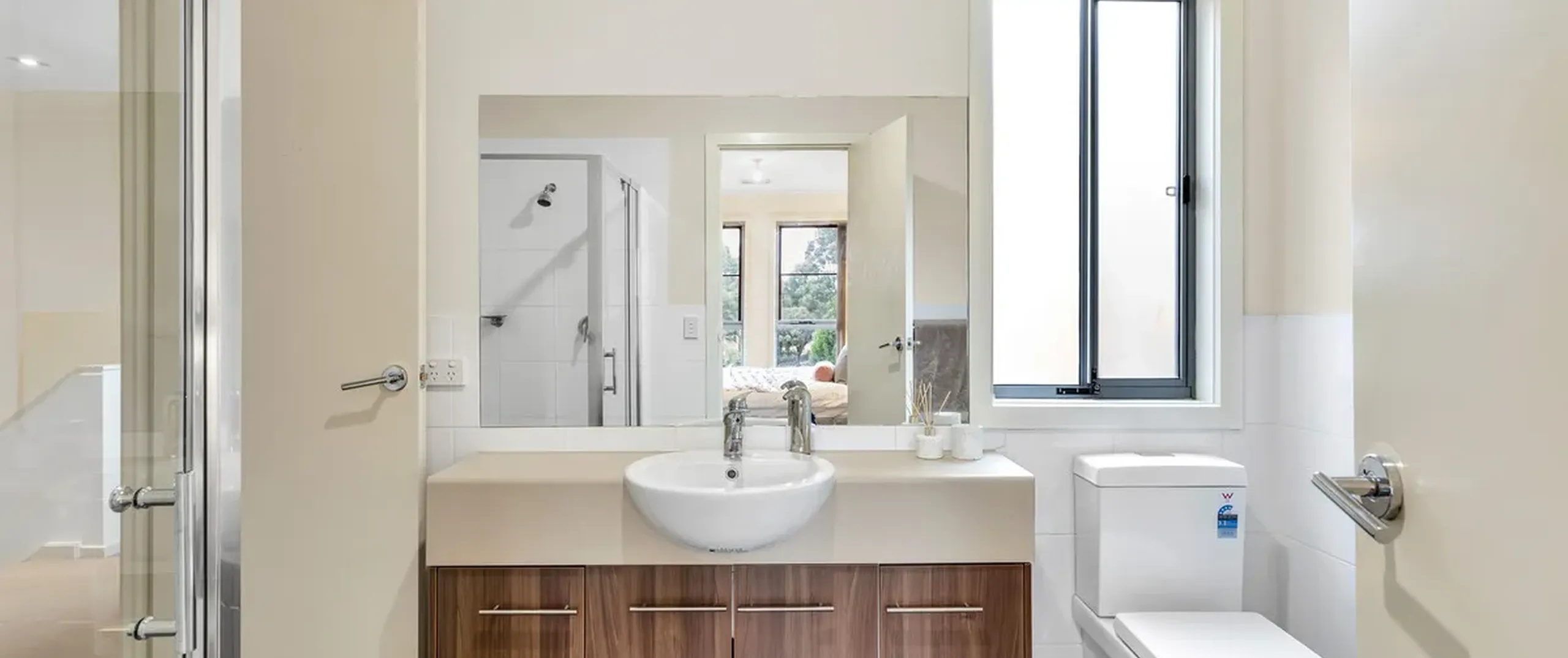 - Large master bedroom with built-in robe and direct access to the bathroom