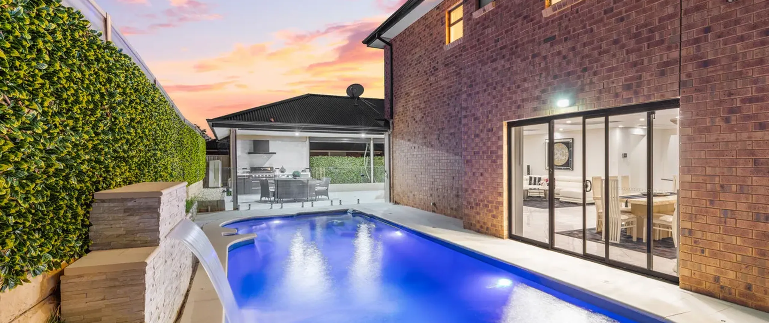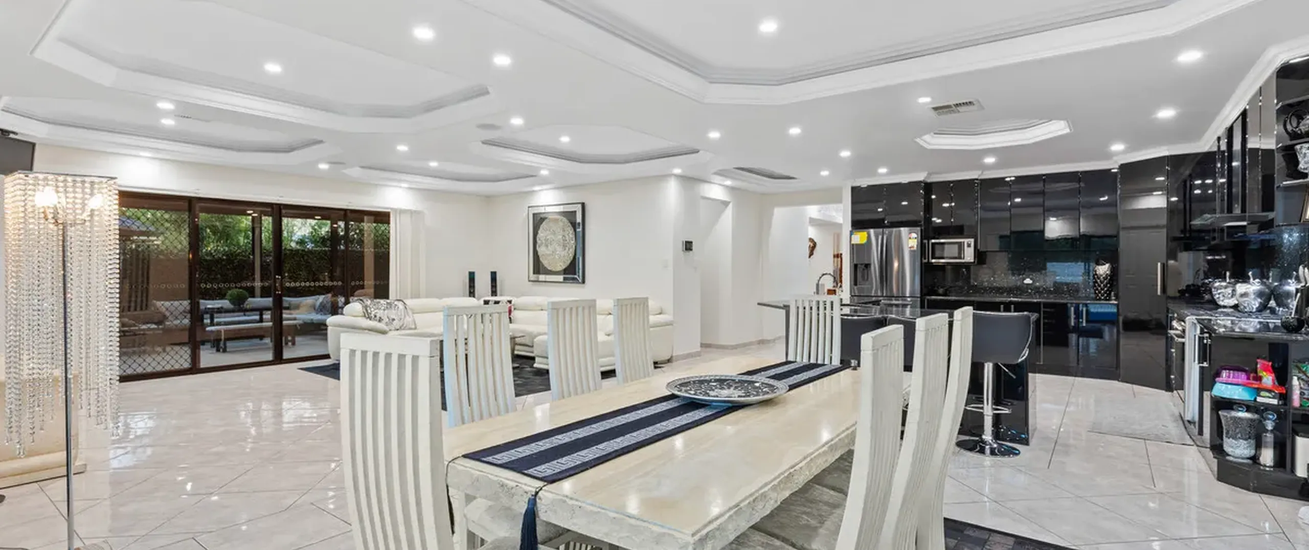 - Striking open plan meals and family area with views of the entertaining area and swimming pool