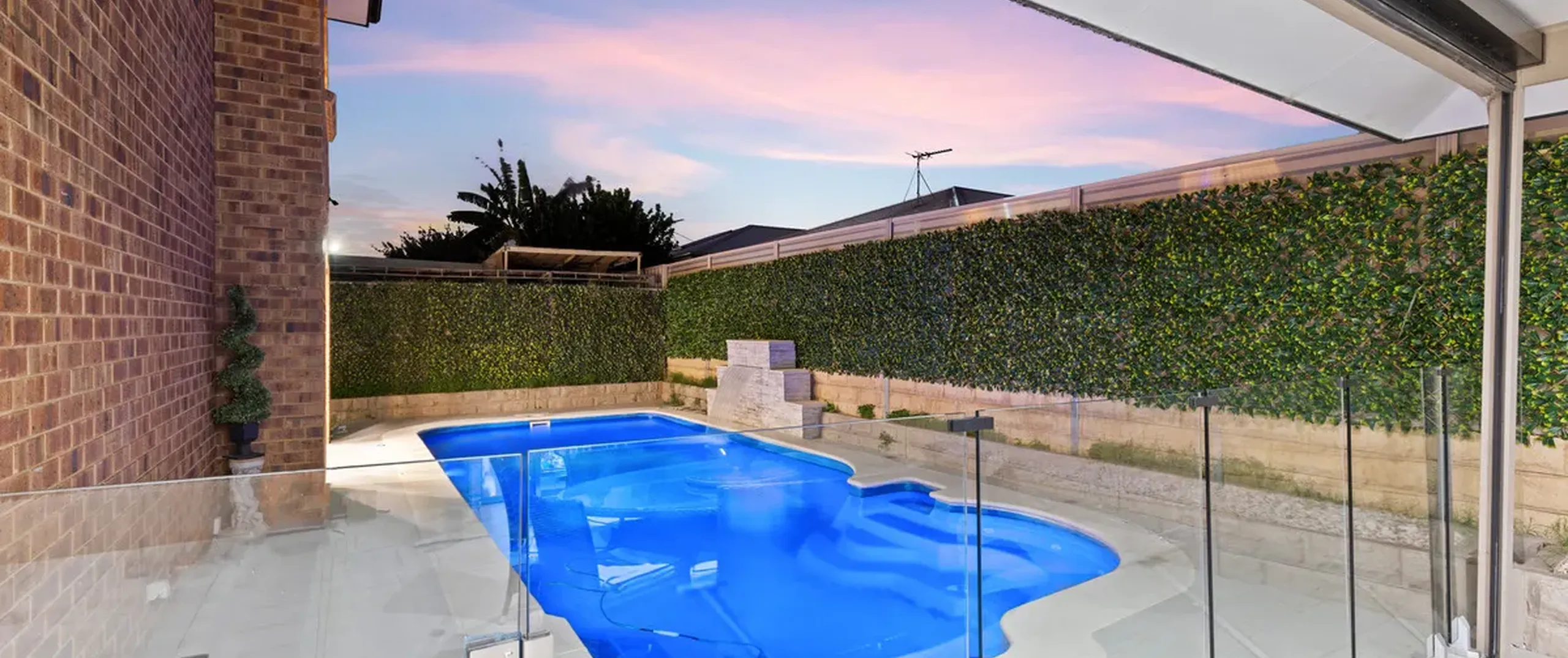 - Sparkling in-ground swimming pool with water feature