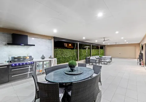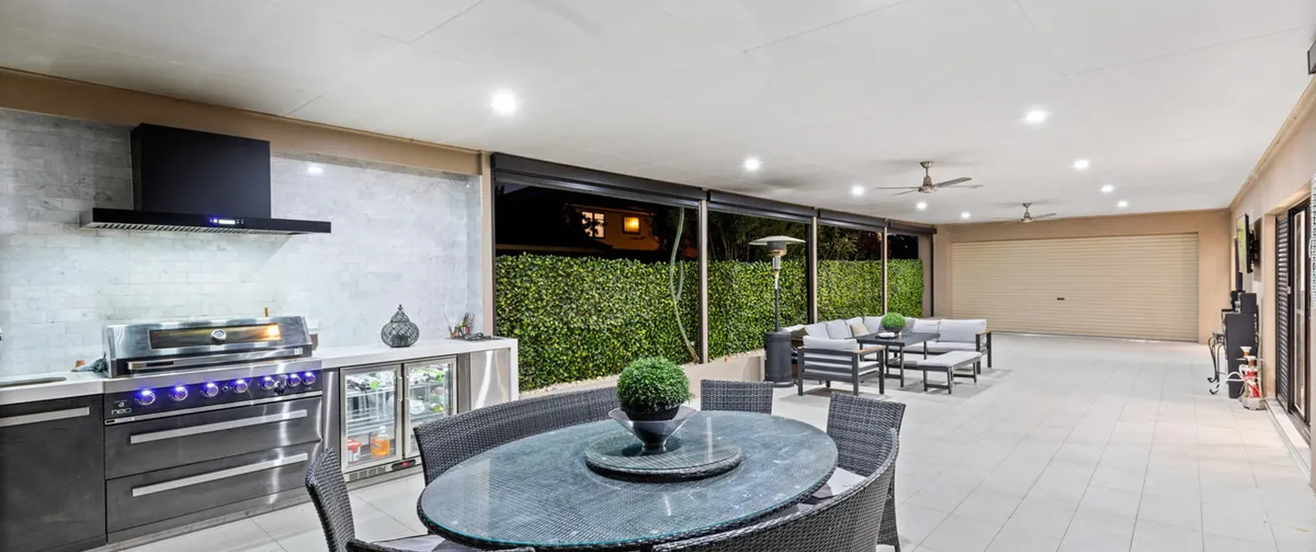 - Exceptional outdoor entertaining area complete with ceiling fans, café blinds and a spectacular outdoor kitchen with a built-in BBQ