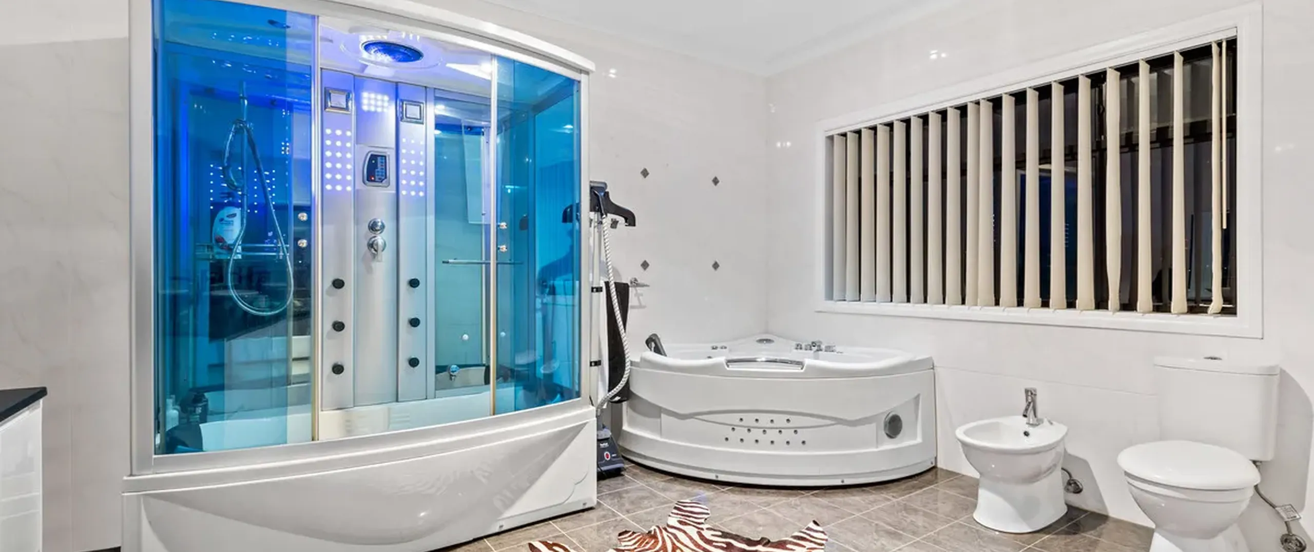 - Spacious master bedroom with double doors, large walk-in robe and ensuite featuring floor to ceiling tiles, his and her basins, spa bath, impressive shower and balcony with exquisite views