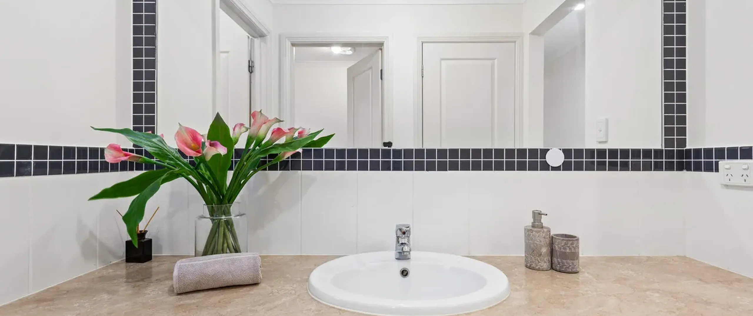 - Sparkling three-way main bathroom with powder room, bathroom and toilet