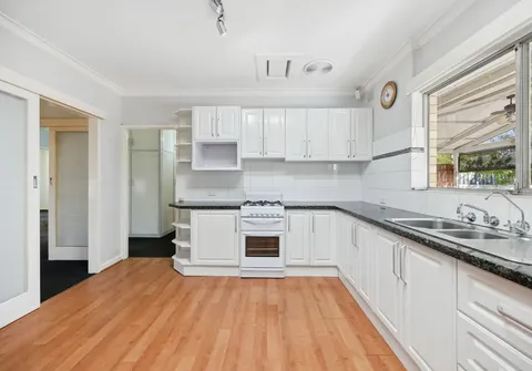 This home features a formal lounge that flows effortlessly into the spacious dine-in kitchen. Three well-proportioned bedrooms and a centrally located bathroom are positioned in the left wing of the house. Outdoors, a generous pitched-roof verandah overlooks a mature, leafy garden - perfect for entertaining family and friends. Adding to the home's appeal is a versatile rumpus room in the backyard, providing a private and practical space to accommodate a range of uses.