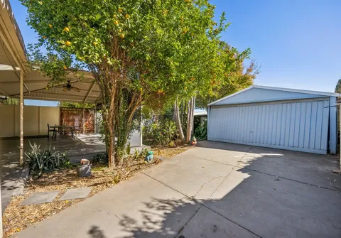 - Double length carport with drive through access to garage/shed ideal for use as a workshop or additional undercover parking