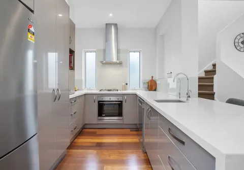 A fully equipped gourmet kitchen in the architecturally designed extension, featuring quality appliances and Caesarstone benchtops, provides the perfect place for family and friends to cook up a storm. Ample cupboard space also means that storage is never an issue here.