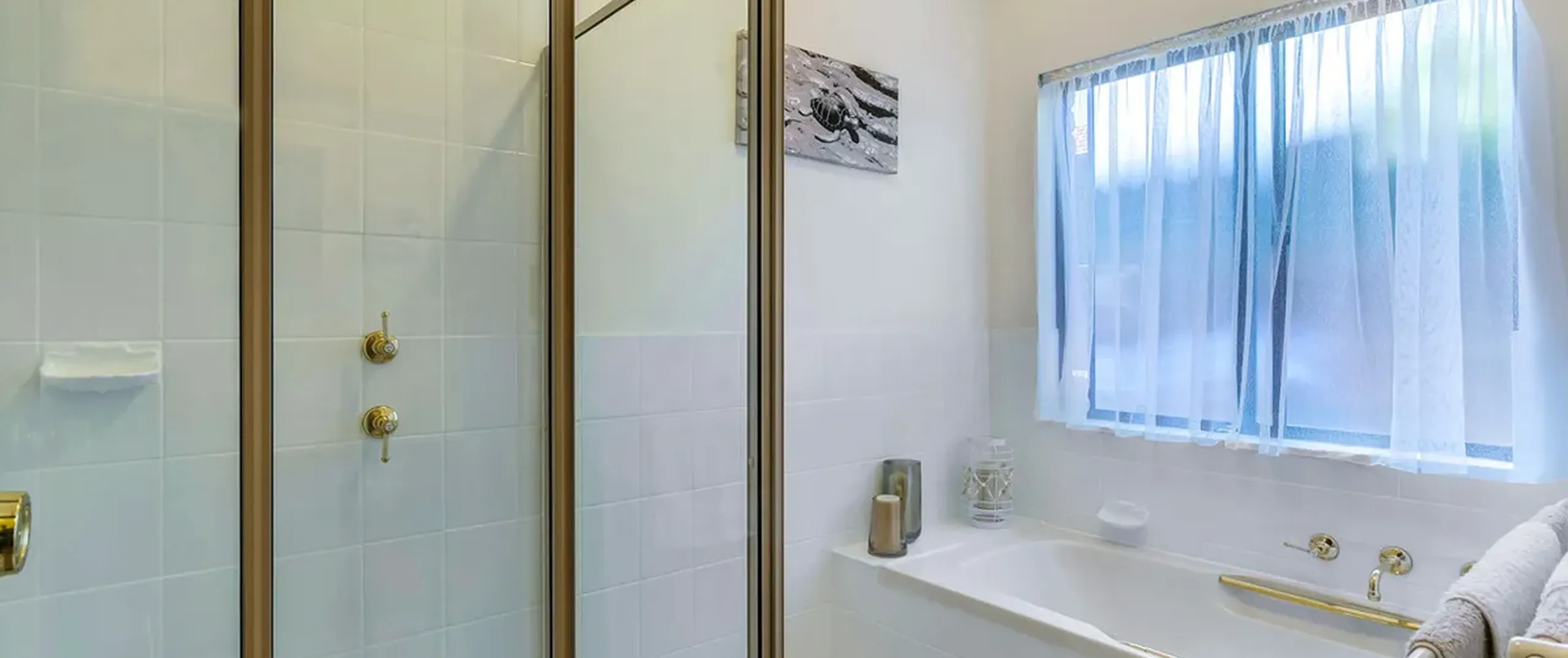 - Large 3 way bathroom with separate bath and shower + separate toilet