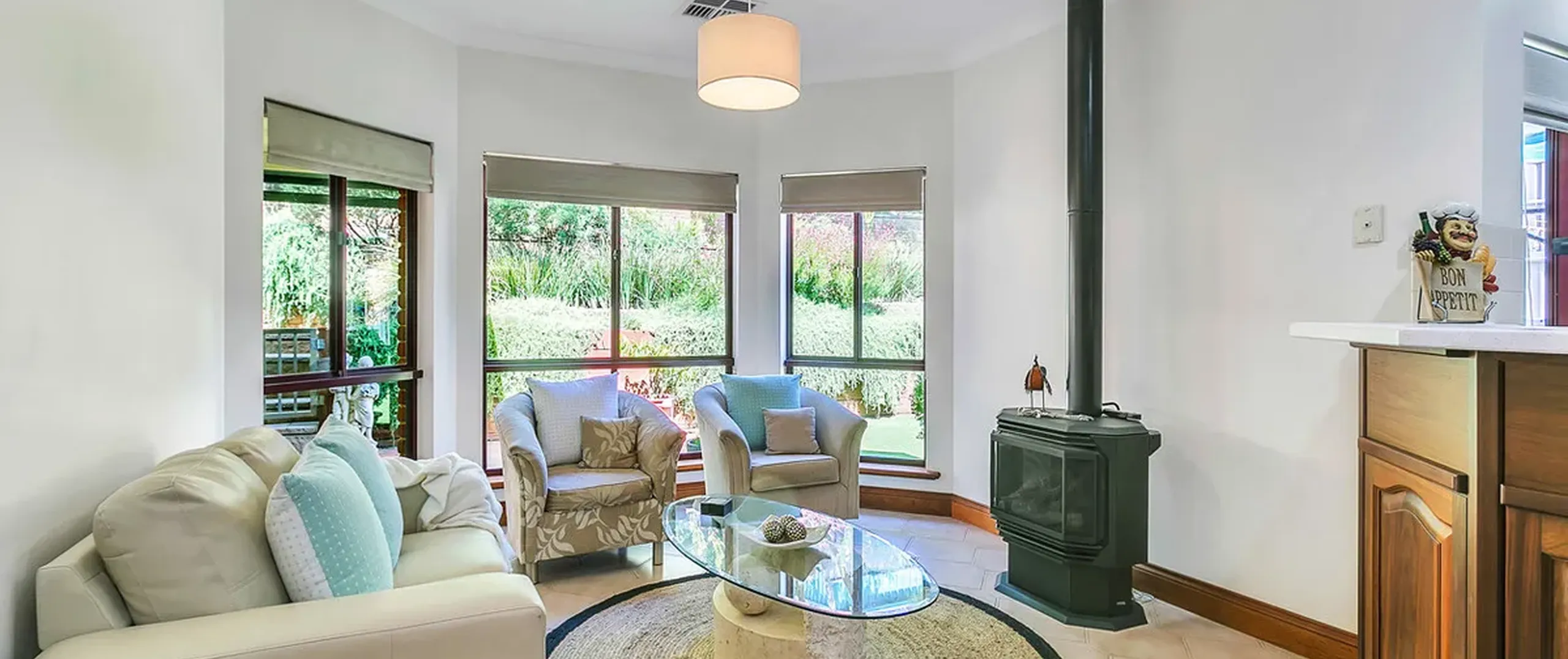 - Light filled open plan kitchen / family and dining area with gas log heater