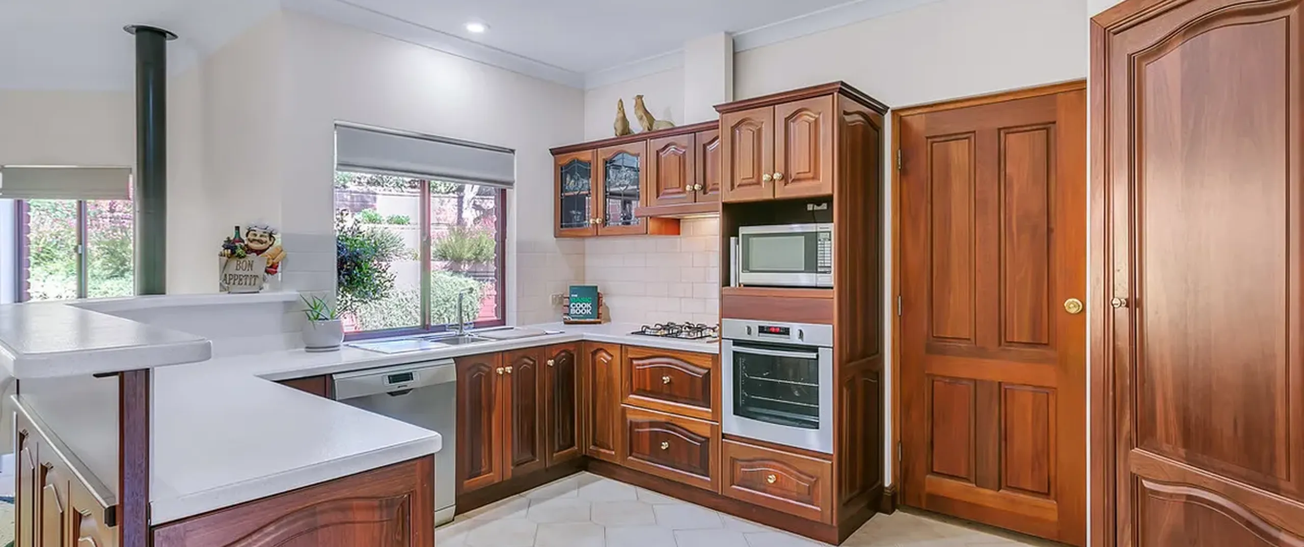 - Spacious timber kitchen with stainless steel appliances including gas cooktop and dishwasher