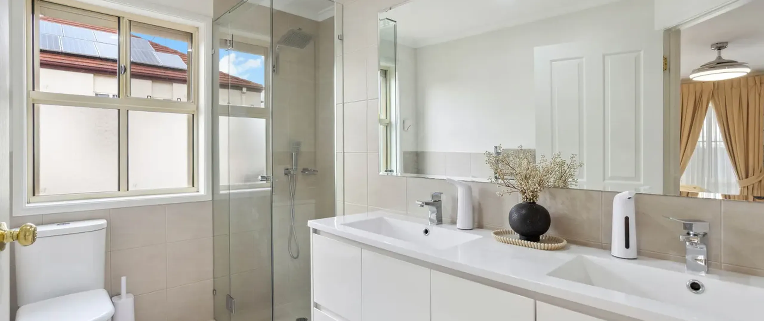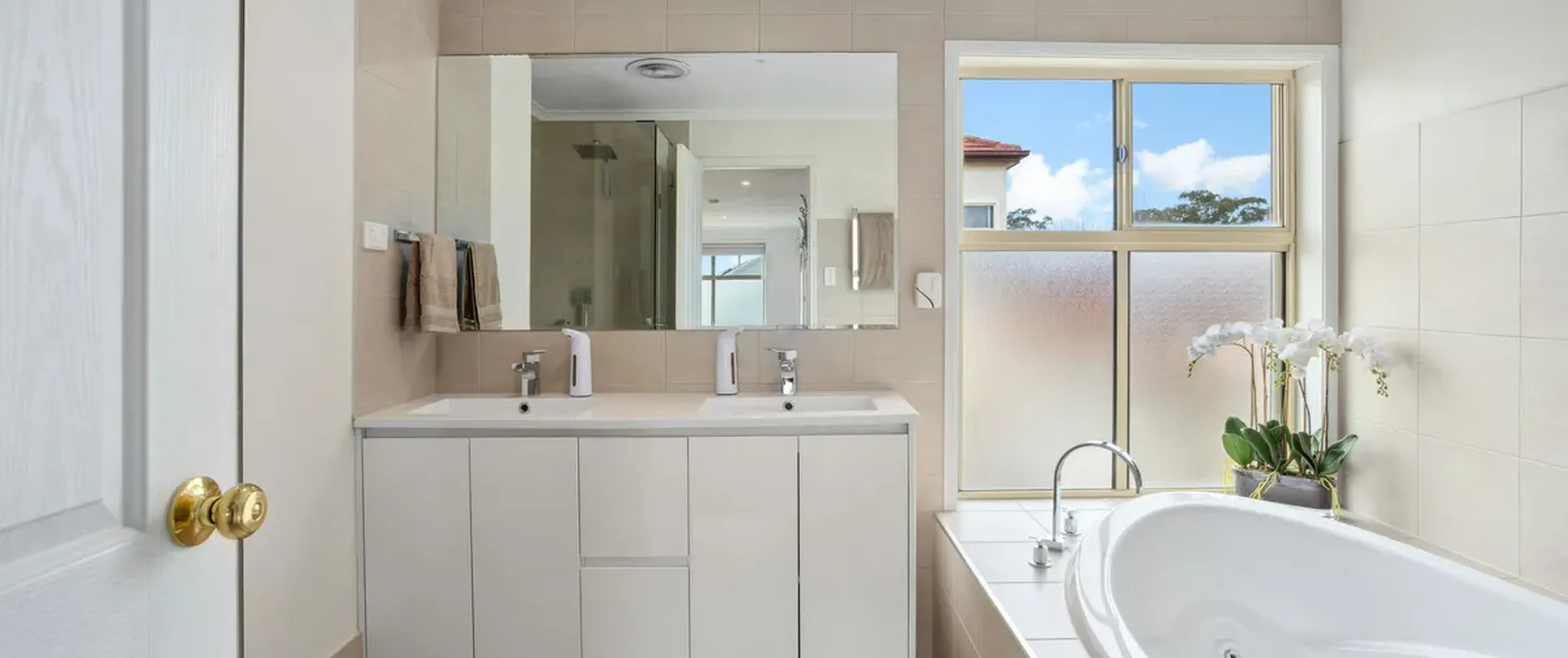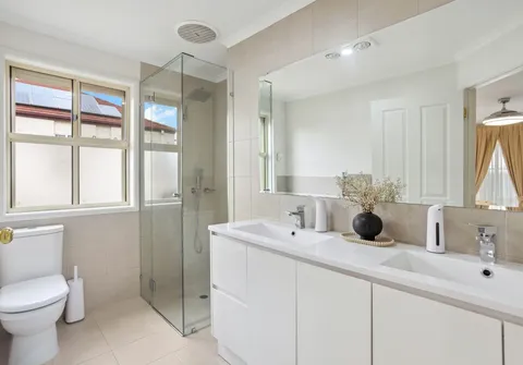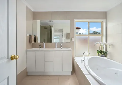 - Large main bathroom with spa bath, dual basins, shower and separate toilet