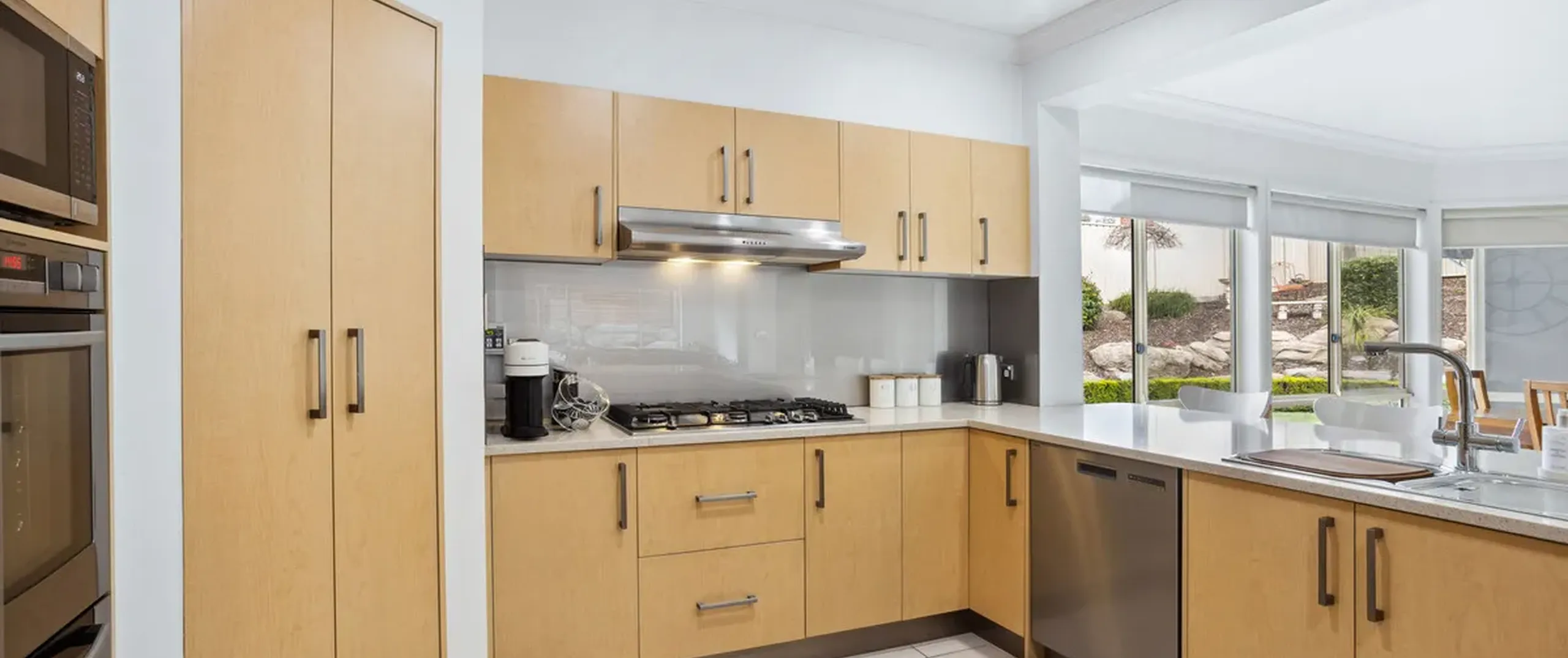 - Wonderfully appointed kitchen with ample bench and storage space, gas cooktop, dishwasher, walk-in pantry, stone bench top and breakfast bar