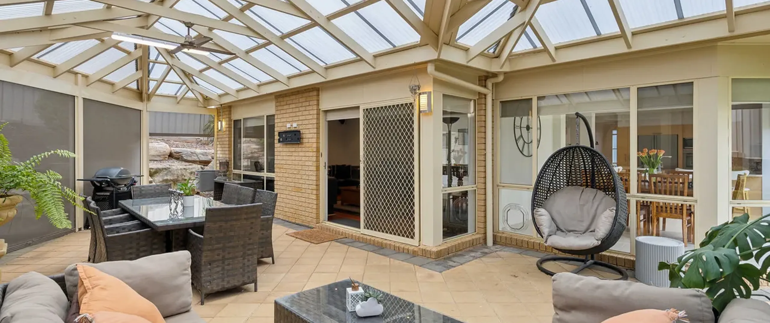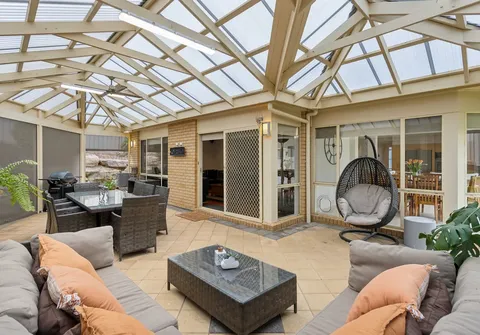 - Impressive outdoor entertaining space with pitched roof pergola, ceiling fan and blinds, perfect for hosting memorable occasions with loved ones all year round