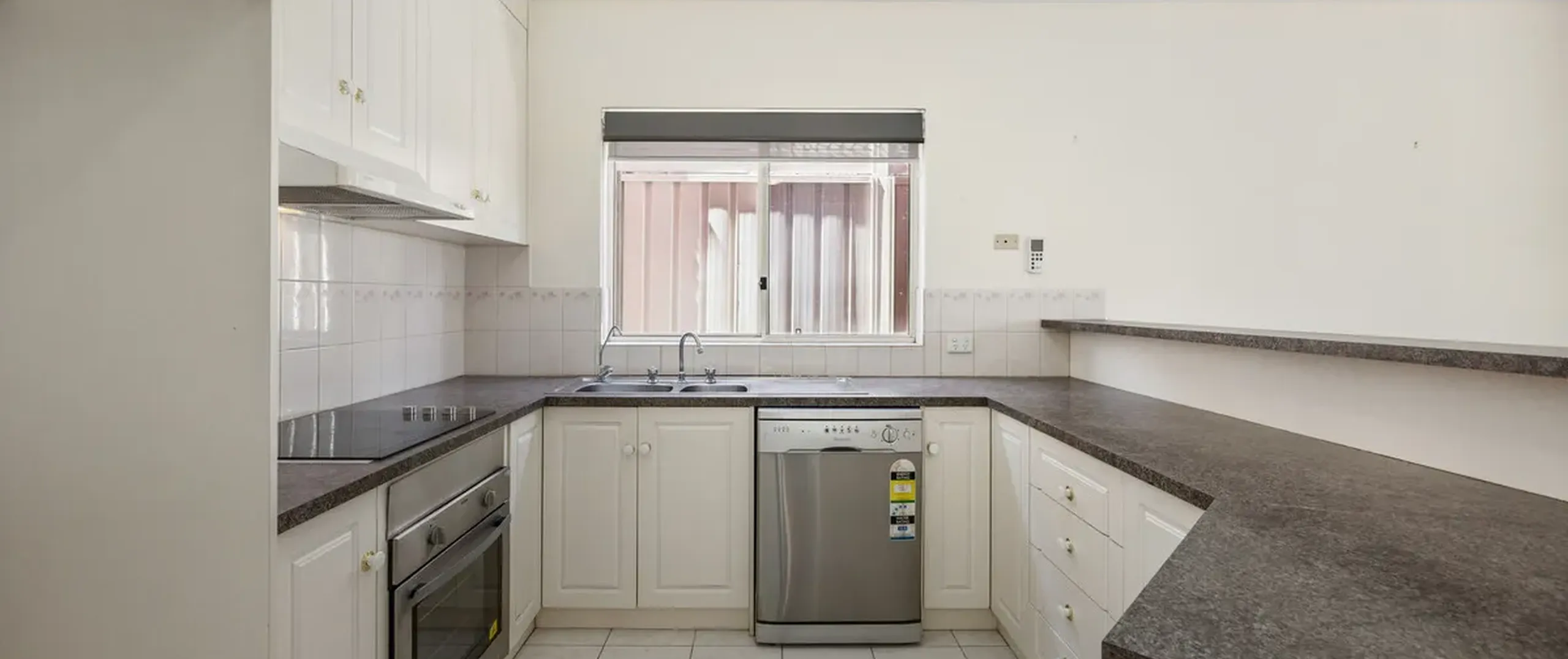 - Well-appointed kitchen featuring double sink, dishwasher, electric cooktop, oven, breakfast bar and abundant storage