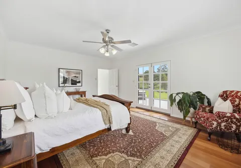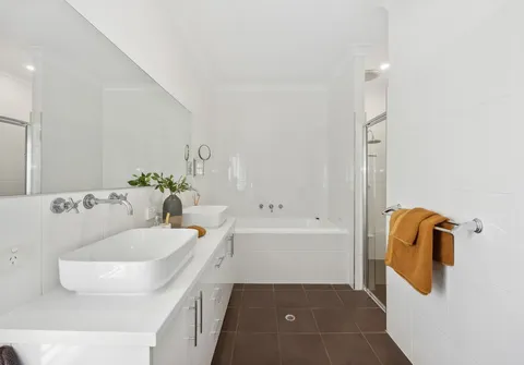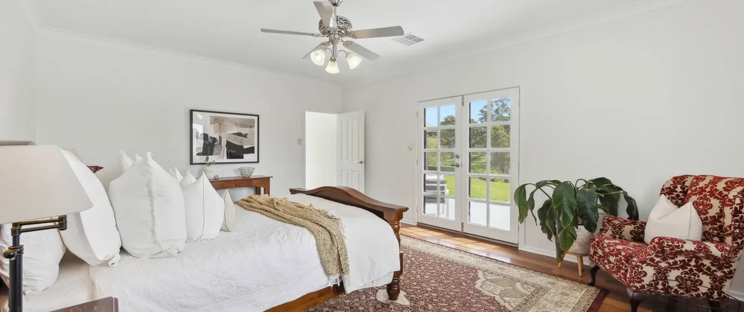 - Master suite complete with a walk-in robe, ceiling fan and ensuite featuring dual basins, separate toilet, bath and dual shower heads, additionally providing your private escape through the dual doors to the back yard