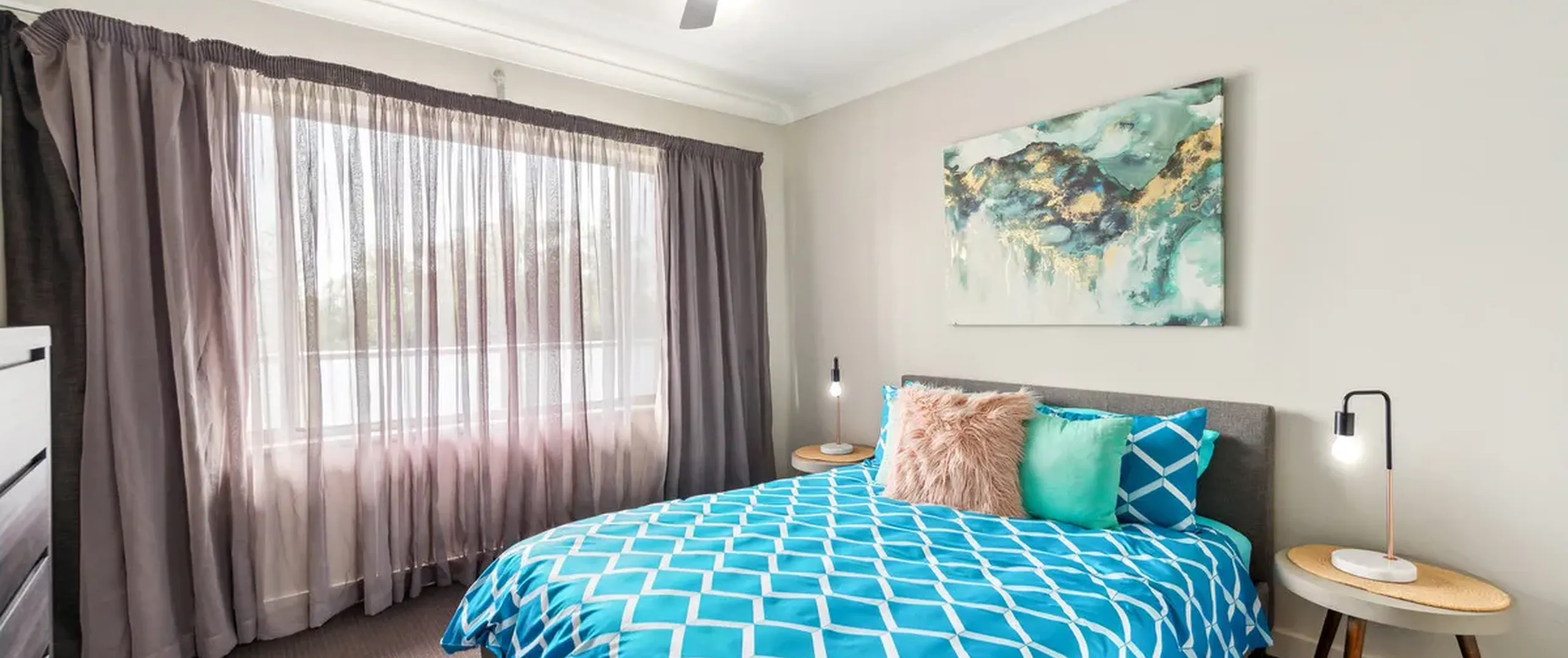 - Two good sized bedrooms, both with built-in robes, bedroom one with ceiling fan