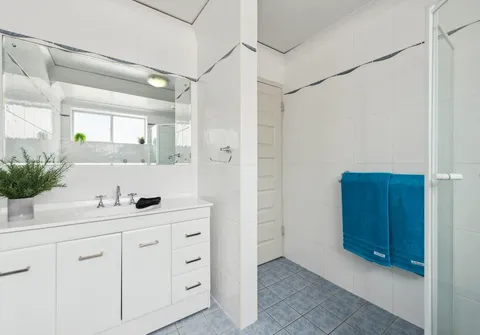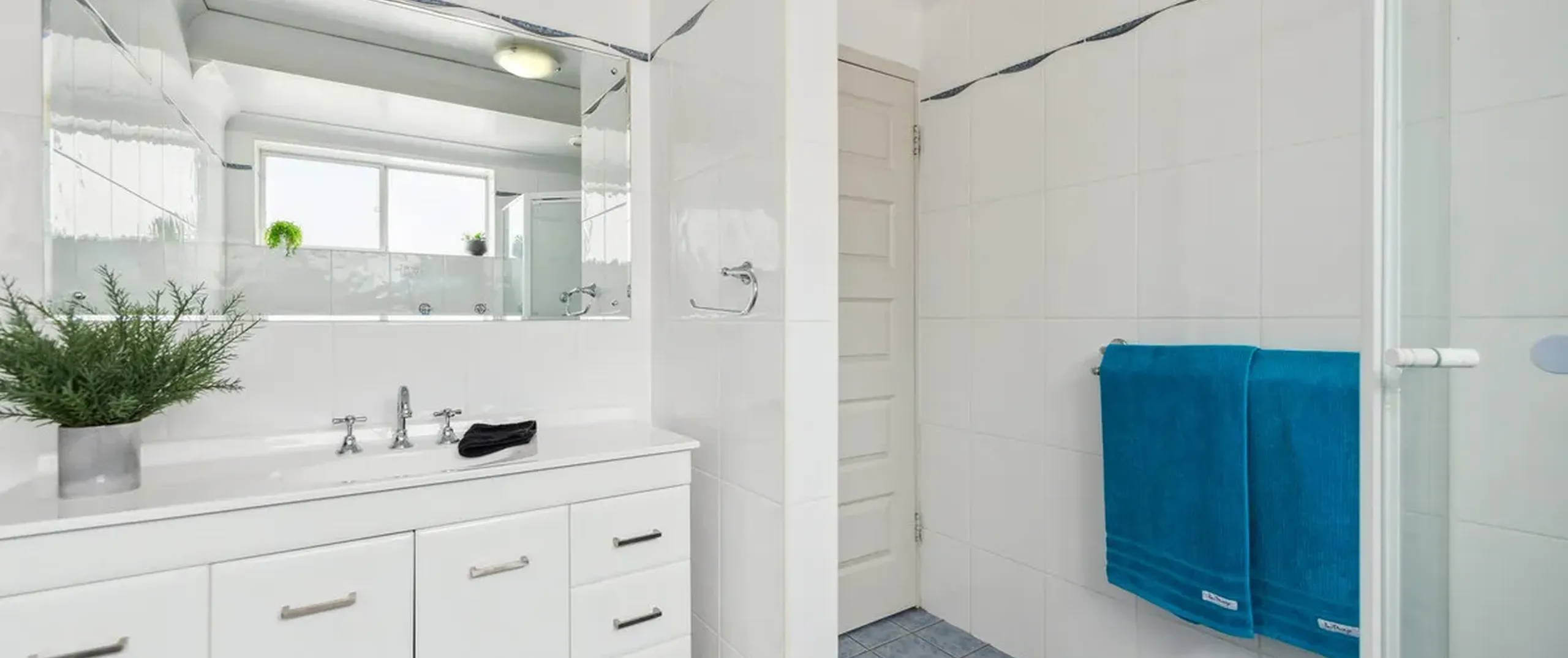 - Neat and tidy bathroom incorporating laundry