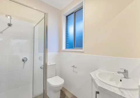 - Main bathroom boasting a vanity room with linen cupboard + separate shower and bath + separate toilet