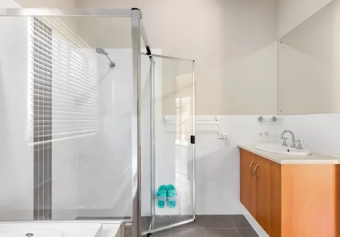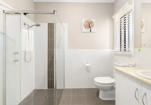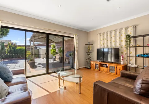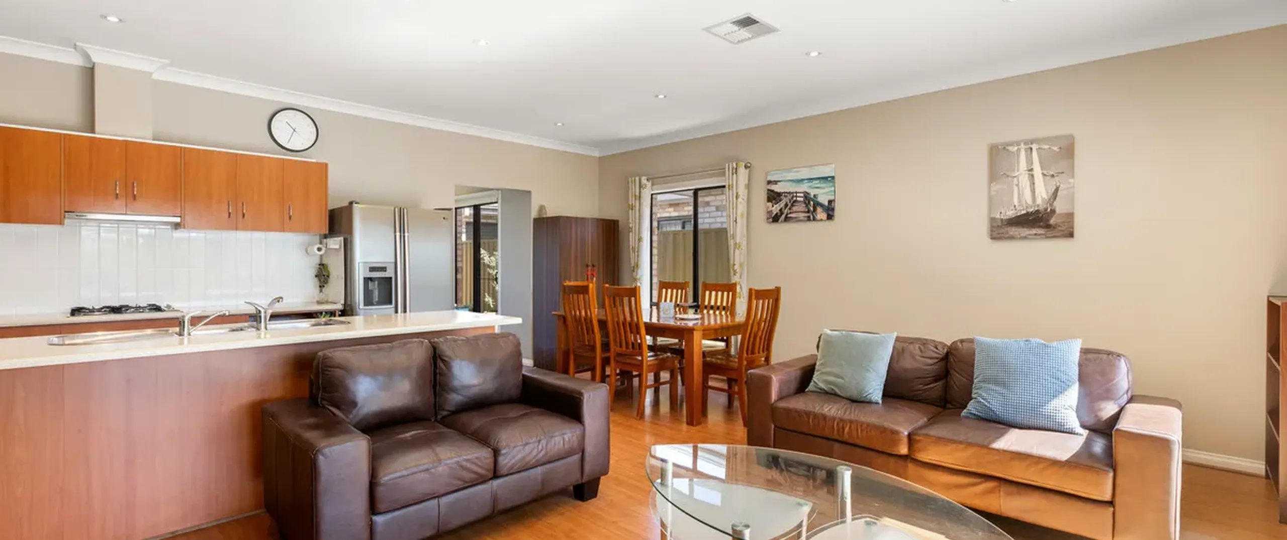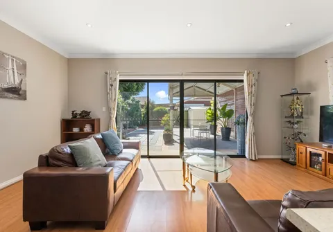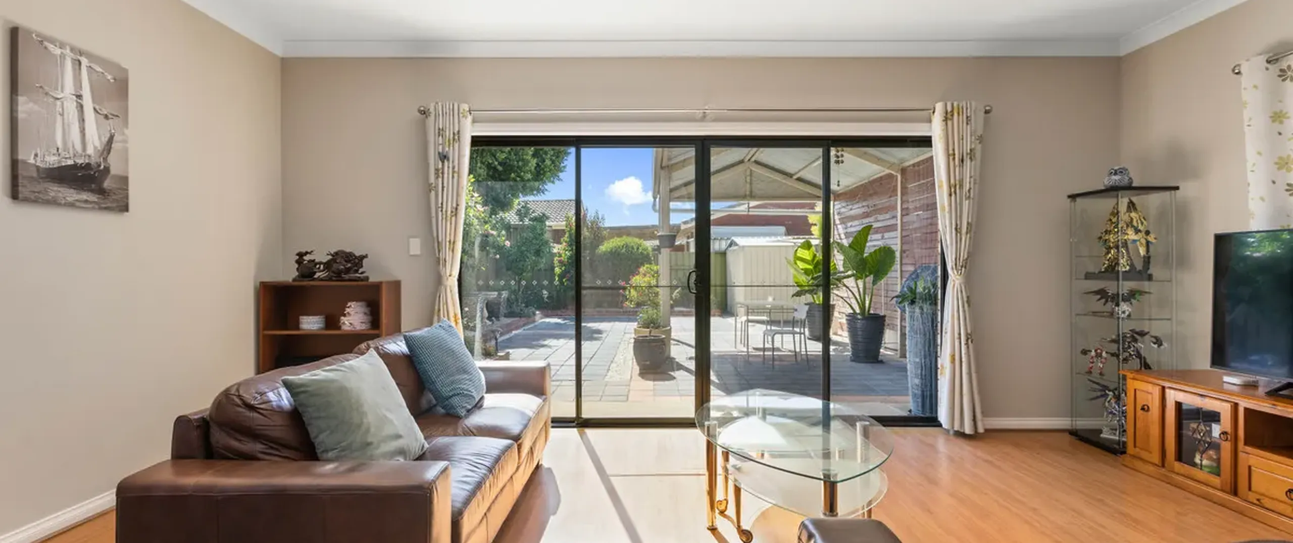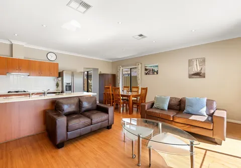 - Light-filled open plan dining and living area with double glass sliding doors opening to the backyard