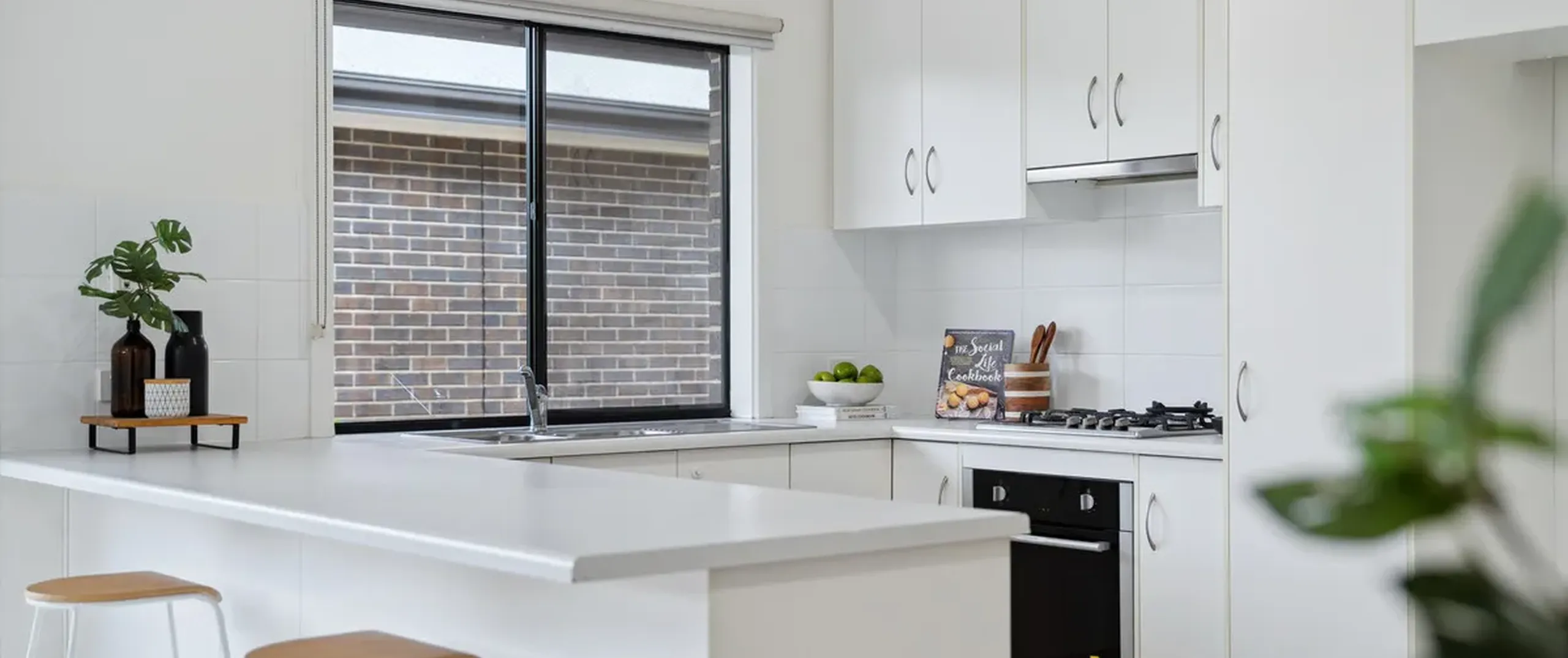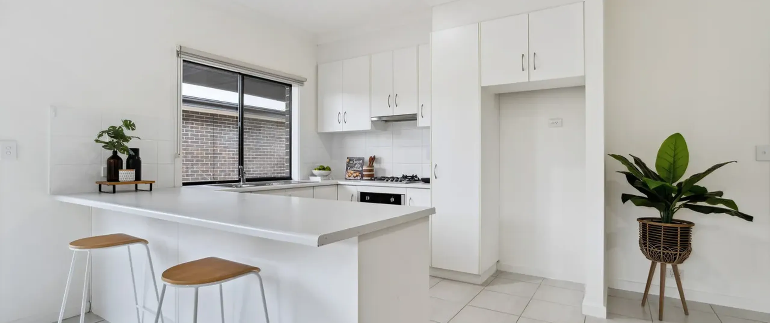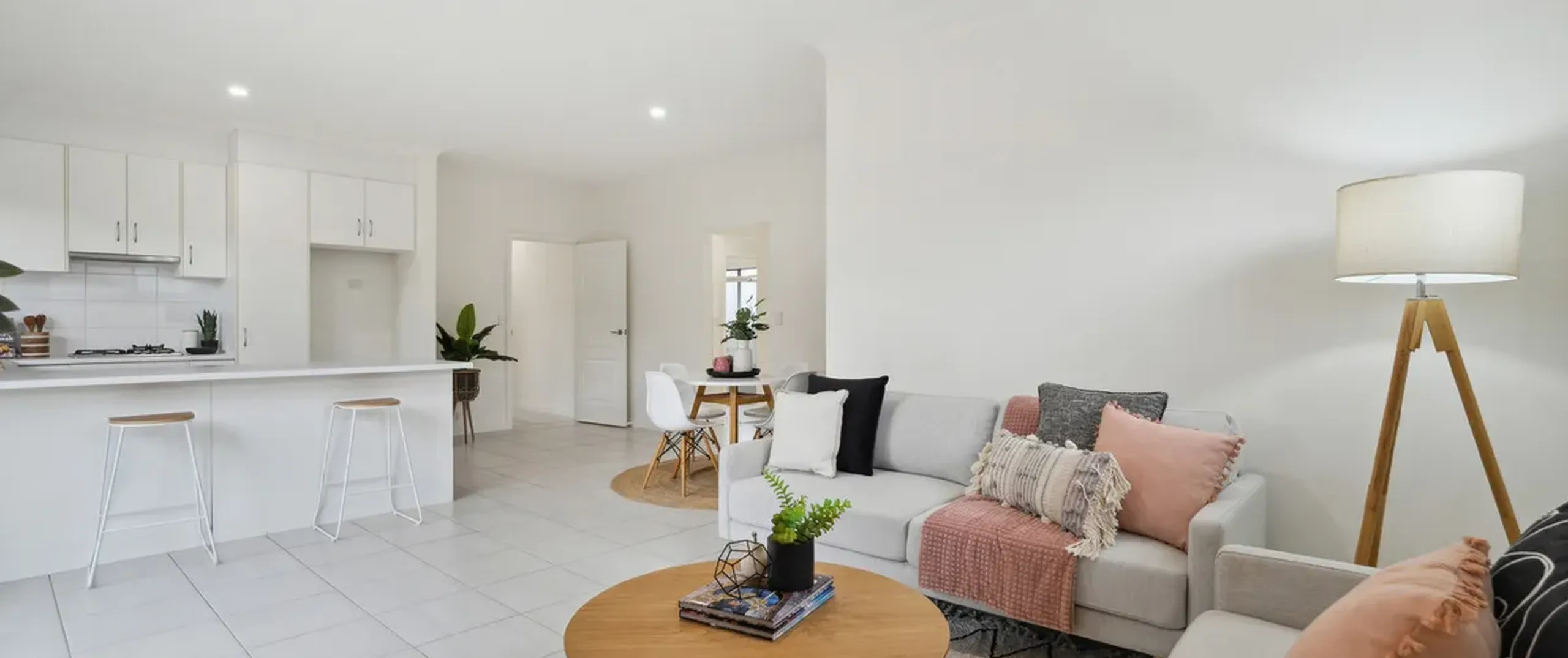 - Open plan kitchen providing gas cook top and electric oven, dishwasher and plenty of cupboards and bench space