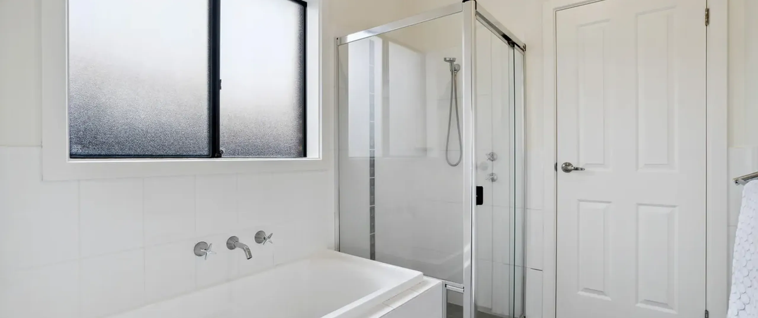 - Bathroom has shower and bath with separate W.C. and vanity