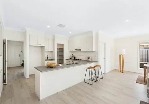 The versatile floor plan is bathed in natural light and complemented by a neutral colour palette. The master suite boasts dual built-in robes and a private ensuite, while the additional bedrooms feature built-in storage and share a stylish main bathroom with a full-size bath.