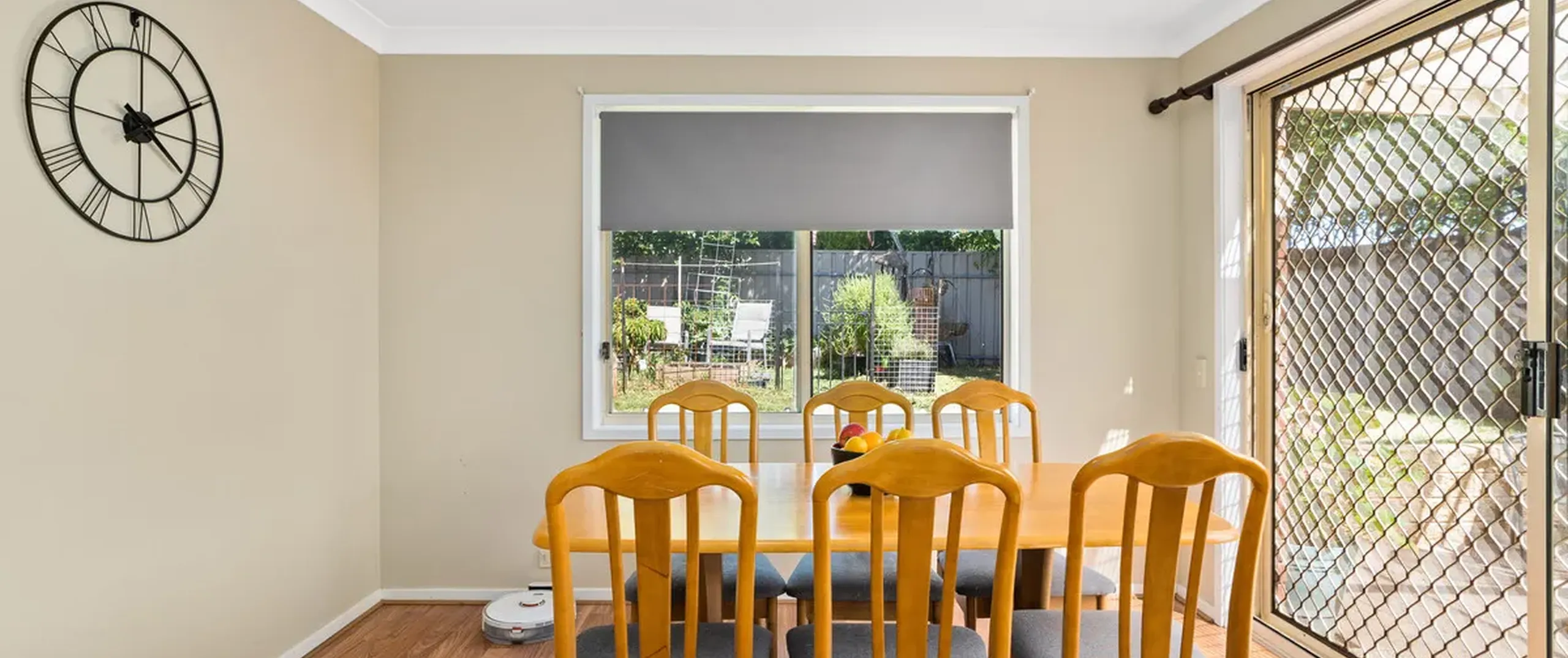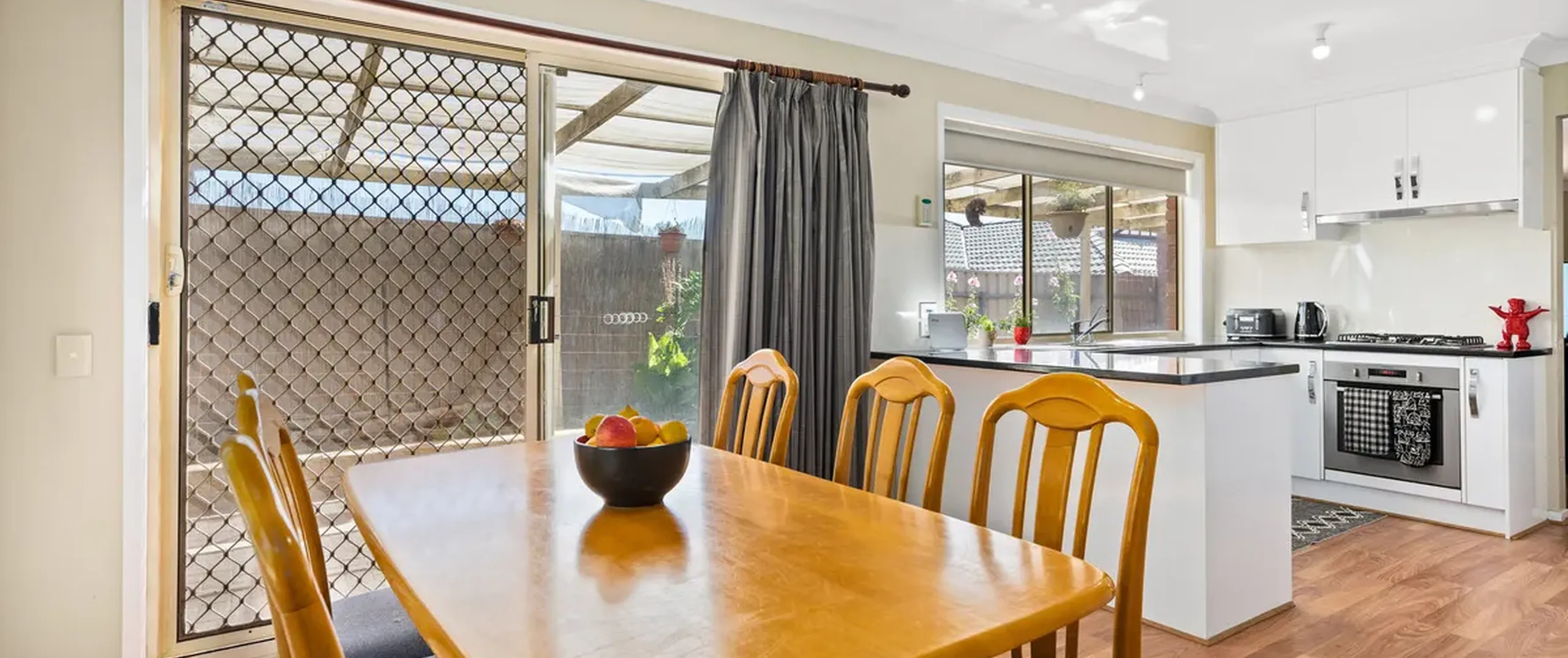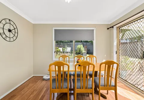 - Dining area adjacent the kitchen with sliding door access to the backyard