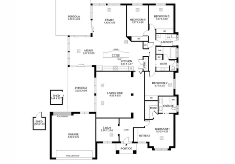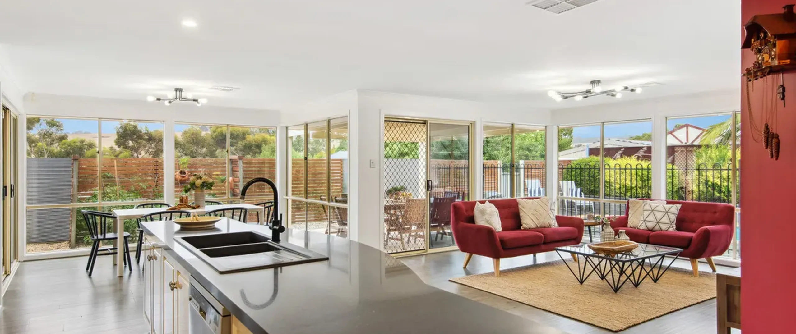- Open plan family/kitchen/meals area flowing through to both outdoor entertaining areas
