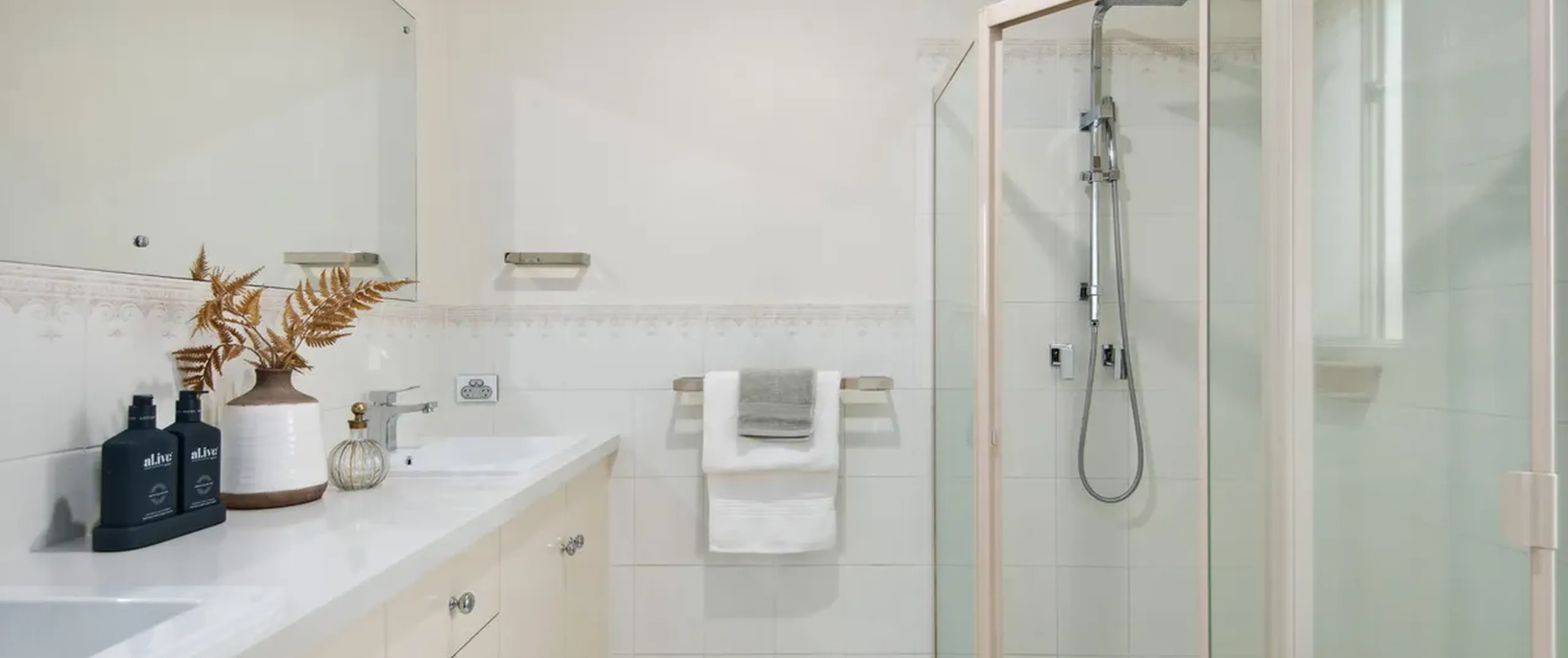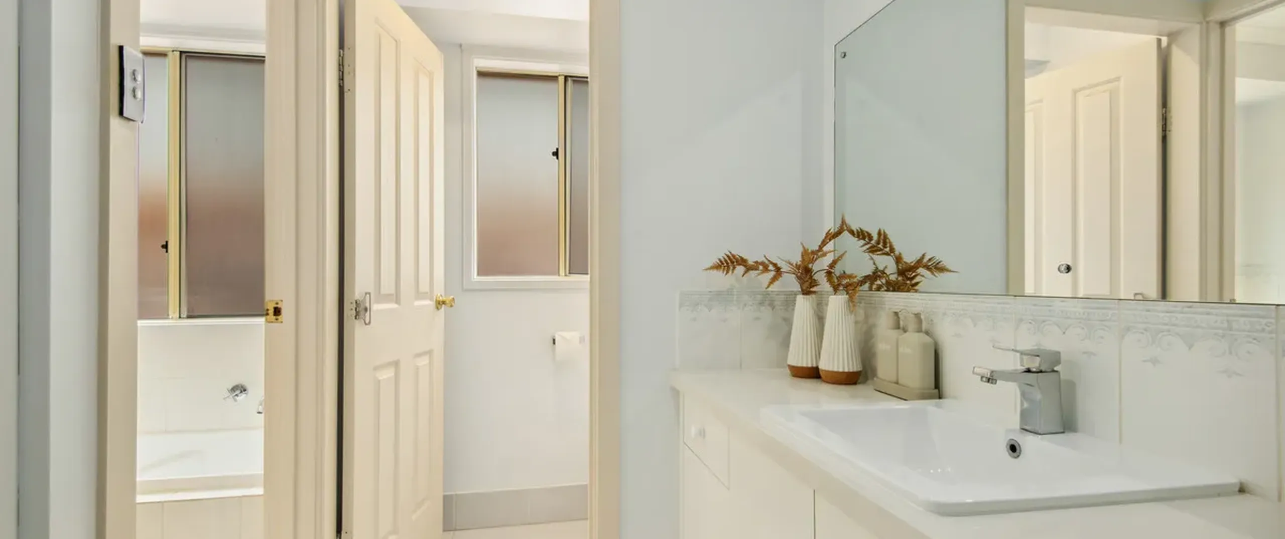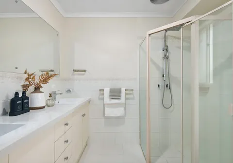 - Central main three-way bathroom with separate bath and shower