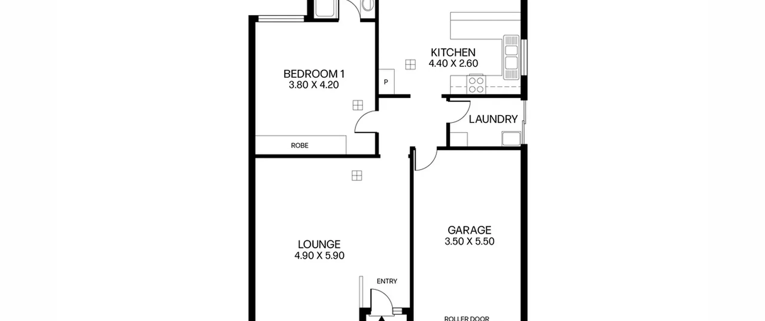 - Single garage featuring a roller door and internal access