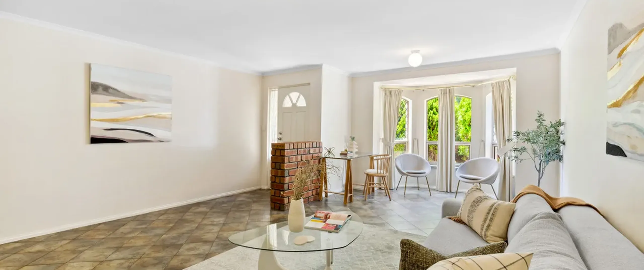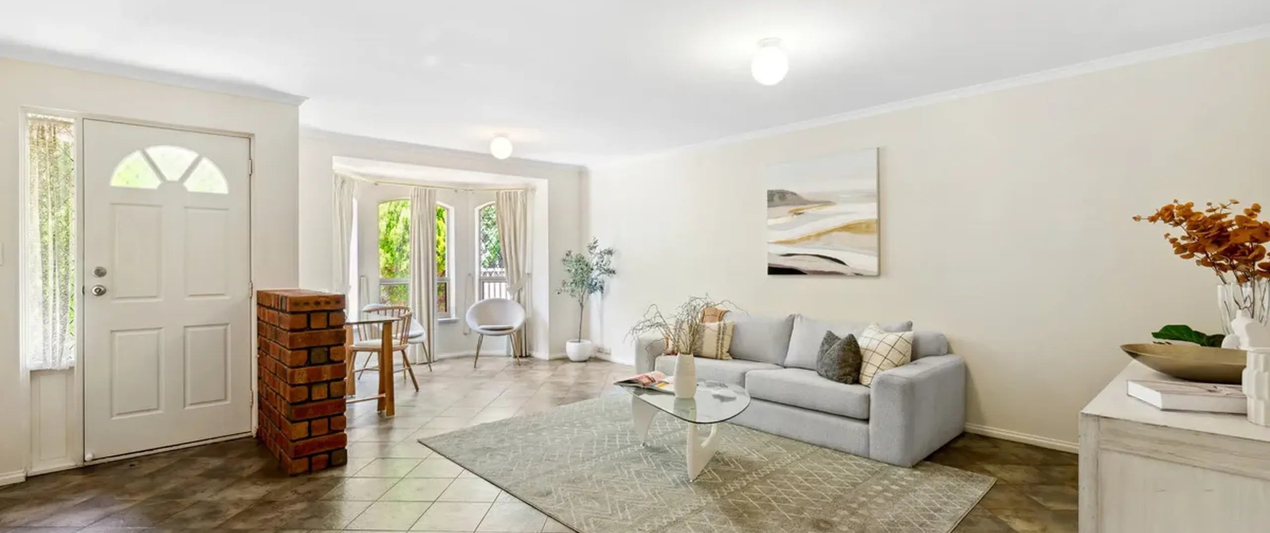 - Inviting lounge room upon entry, enhanced by a charming bay window