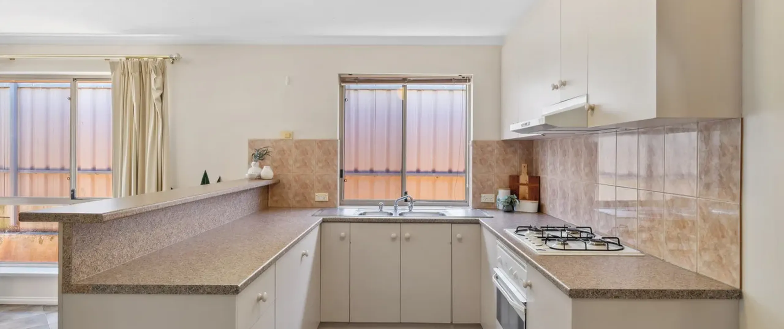 - Timeless kitchen design with a gas cooktop, oven, and abundant cupboard and bench space
